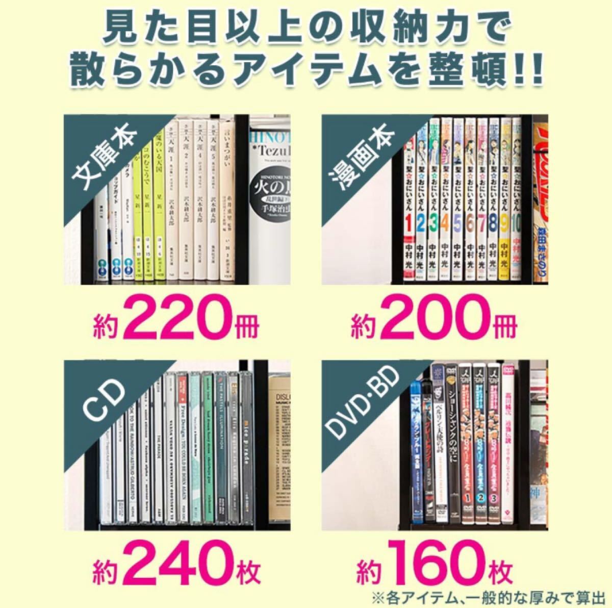 大容量なので場所を取らずに文庫本や漫画本をスッキリと収納できます。
