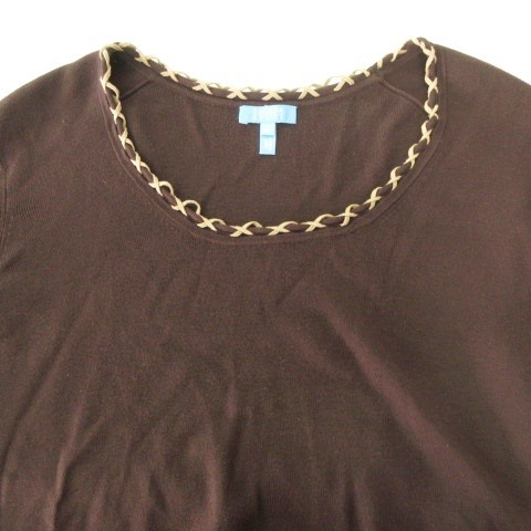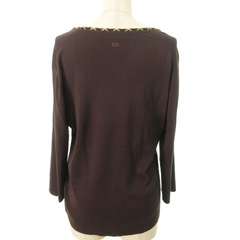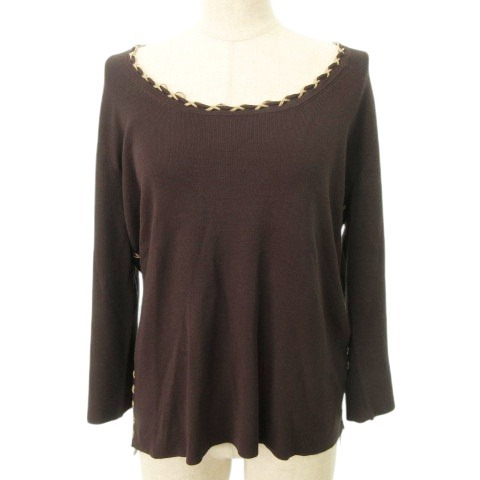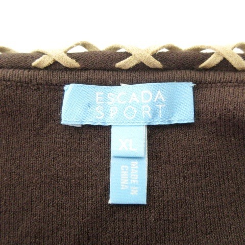 エスカーダ ESCADA 美品 SPORT スポーツ ニット 長袖 ボートネック 無地 薄手 XLサイズ 茶 ブラウン レディース