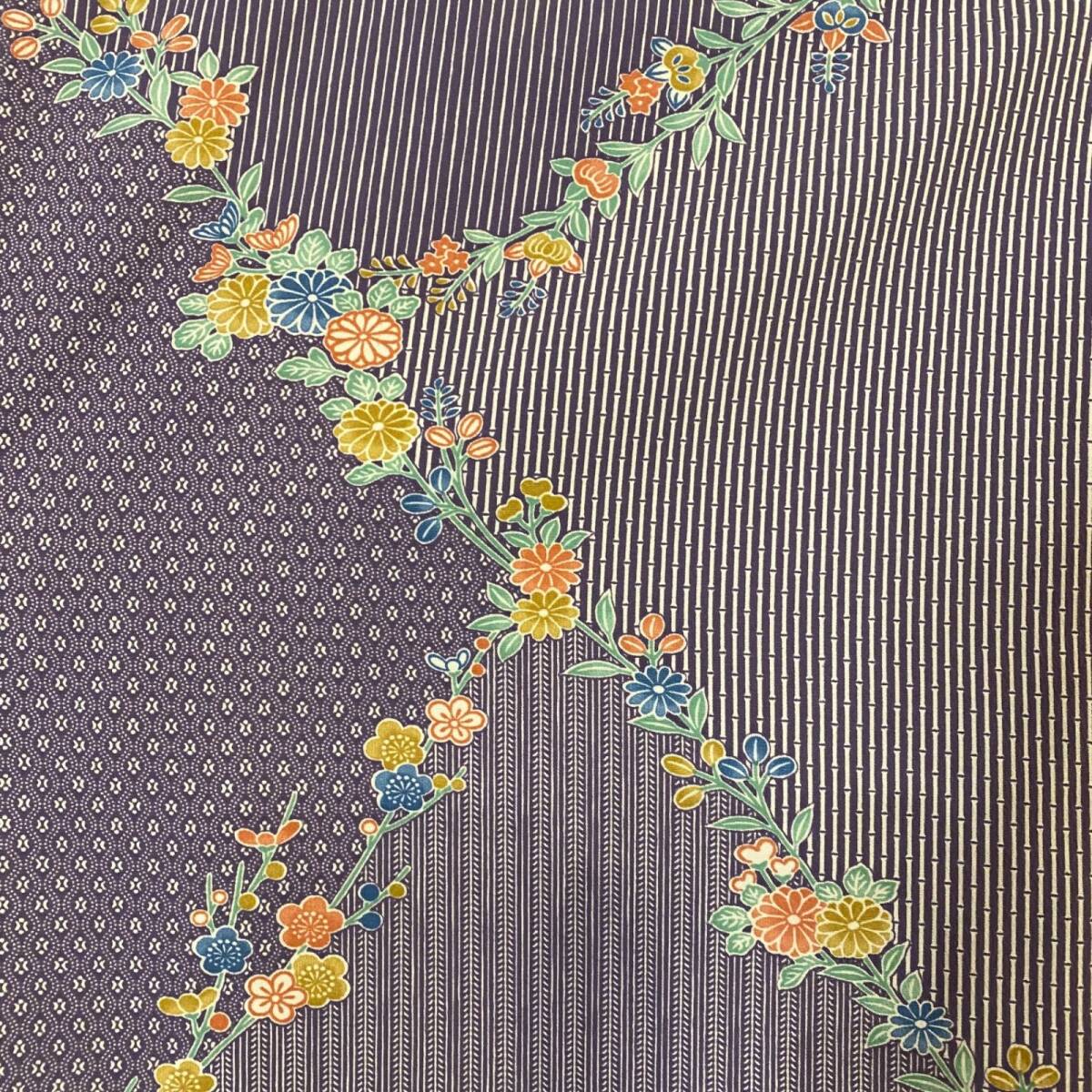 淡い藤ねずのストライプ地を斜めに切り替え、