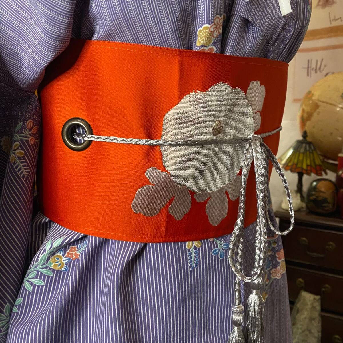 ②USEDリメイク品: 名古屋帯リメイク サッシュベルト