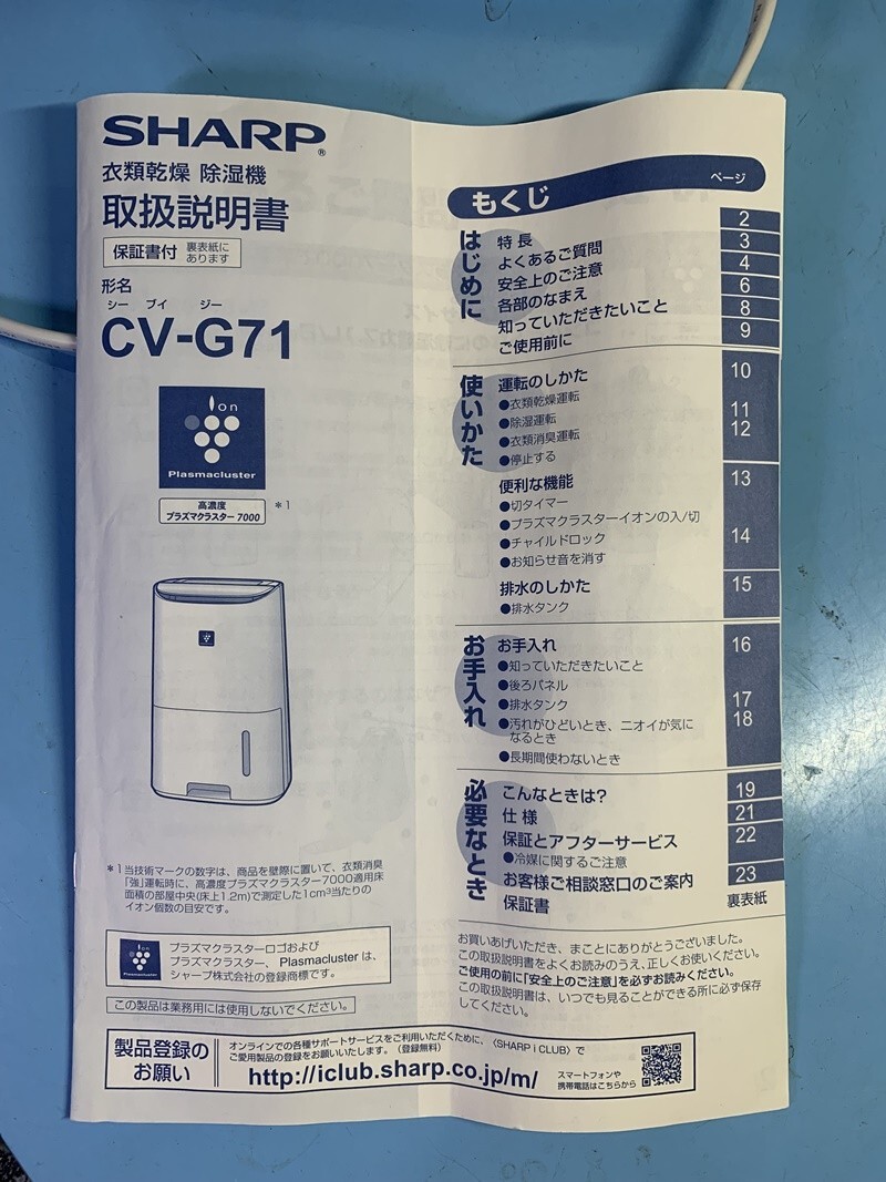 | 札幌近郊南幌町発 SHARP シャープ 除湿機 CV-G71-W ホワイト 衣類乾燥 衣類乾燥除湿機 コンプレッサー式 8畳~16畳 2018年製 | ||