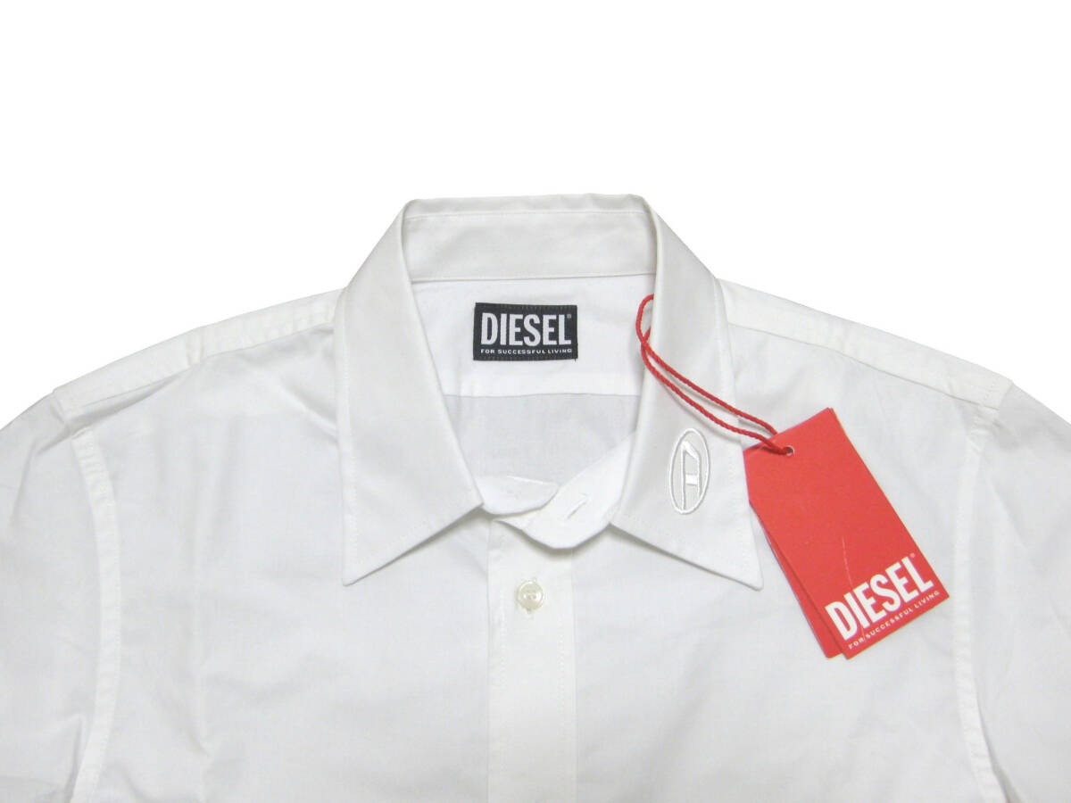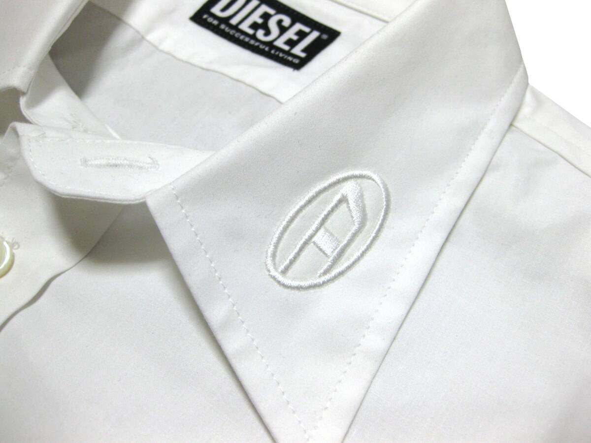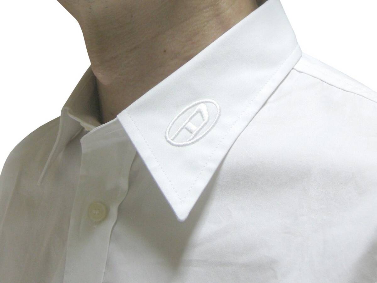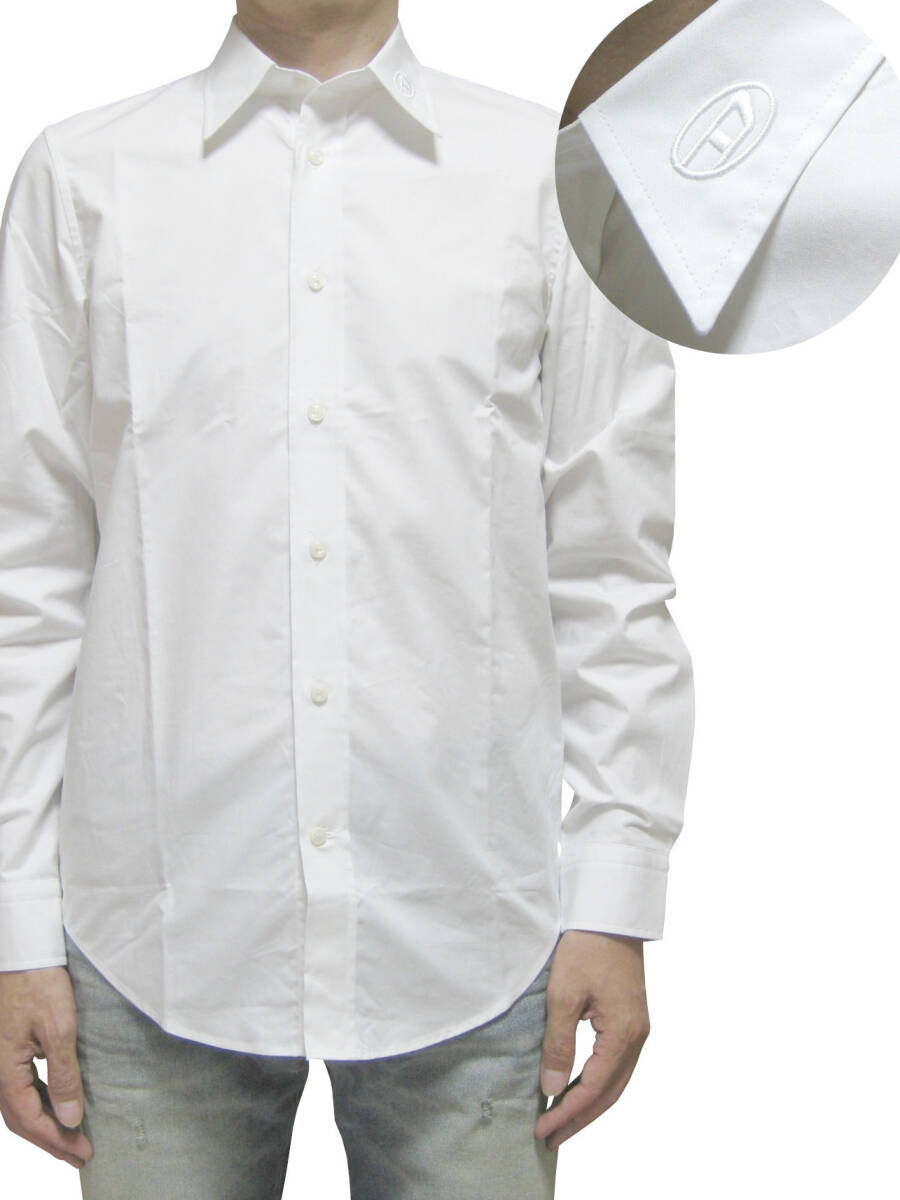 新品 直輸入 DIESEL ディーゼル オーバルD 襟ロゴ スリムフィット ドレスシャツ S-BEN-CL-A ホワイト 46サイズ ポプリンコットン