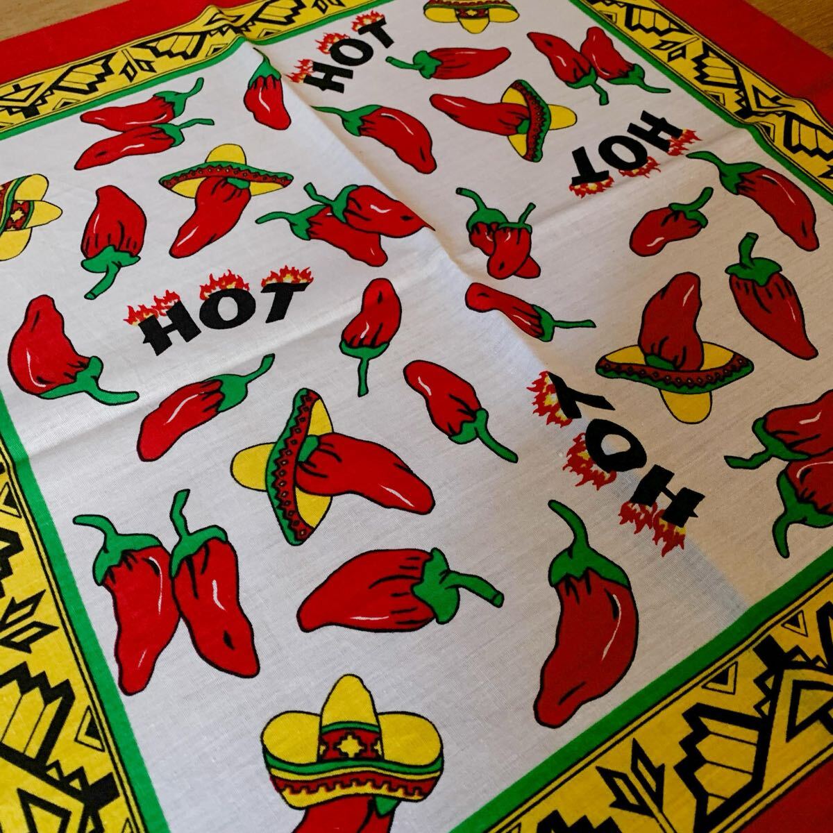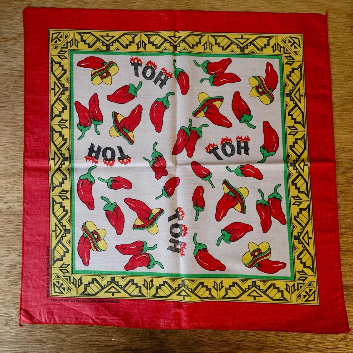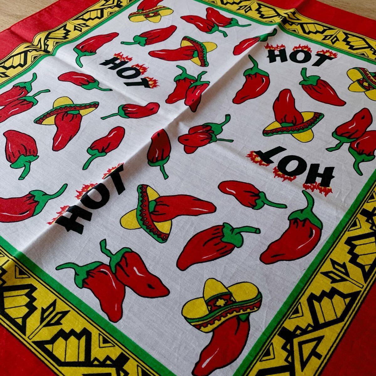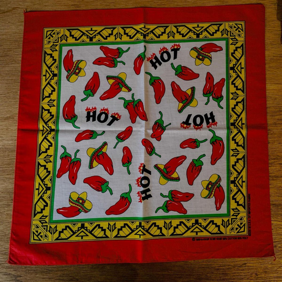 アメリカで購入したセカンドハンド(古着)の、 ホットチリ柄のバンダナです。