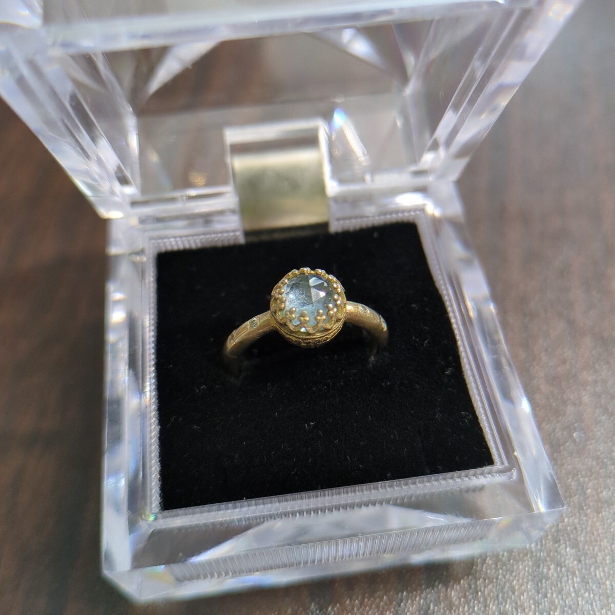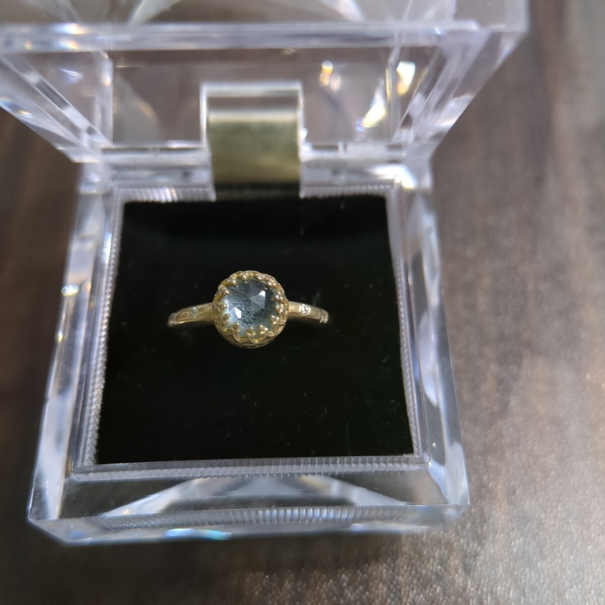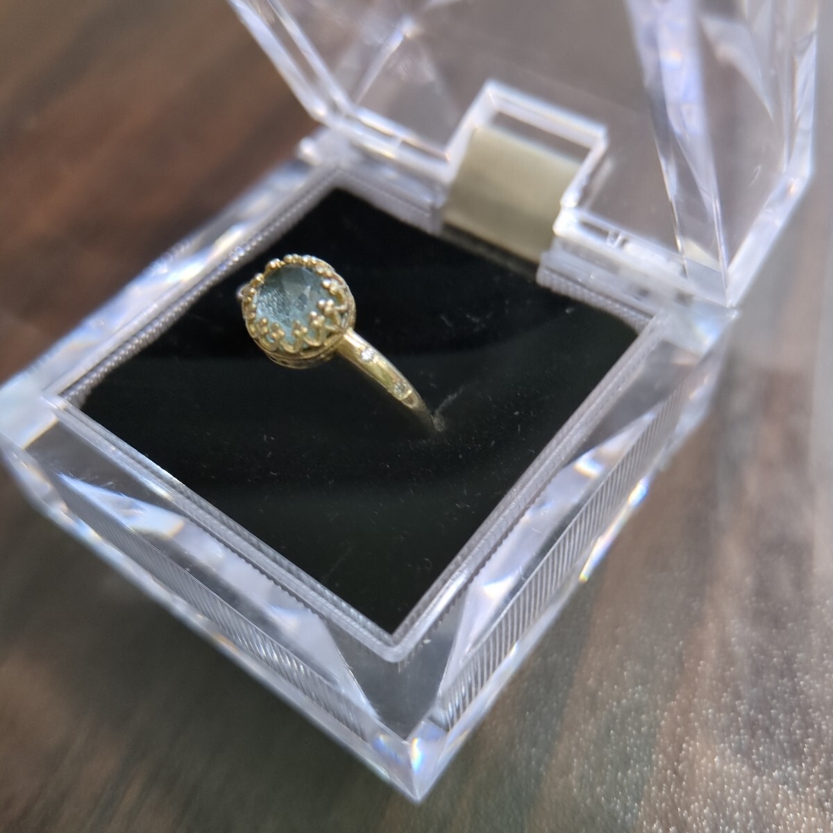 クラウンモチーフの枠にモスアクアマリンを組み合わせたお品です。