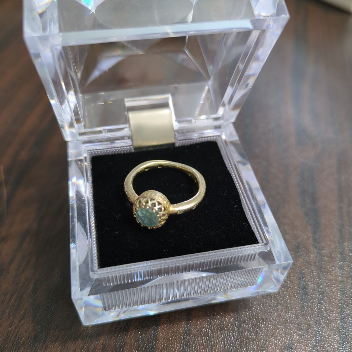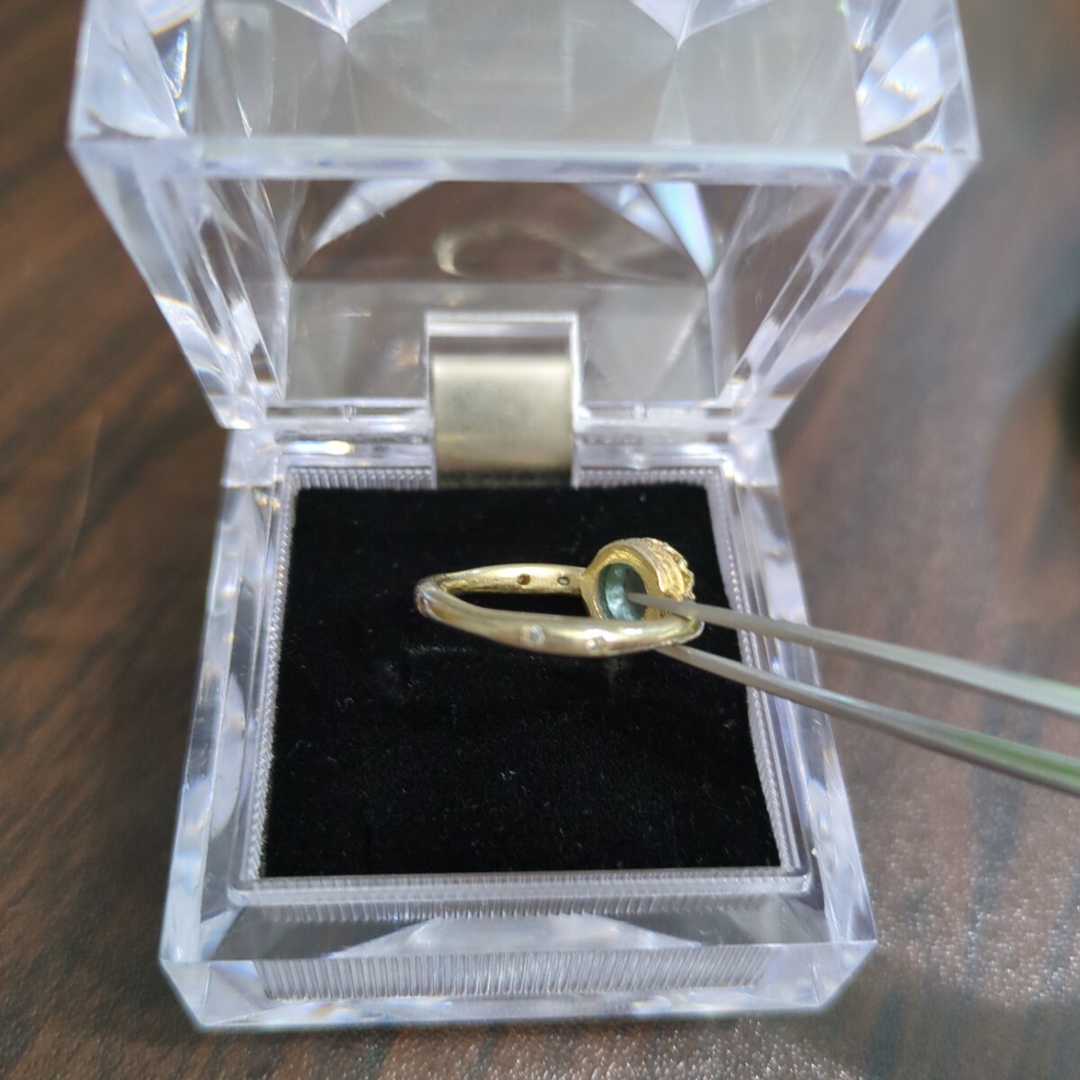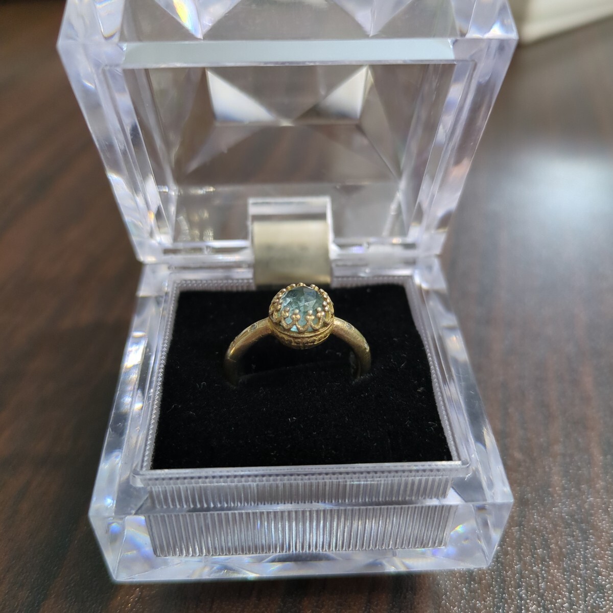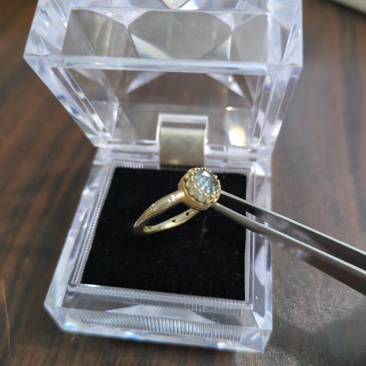 クラウンモチーフの枠にモスアクアマリンを組み合わせたお品です。