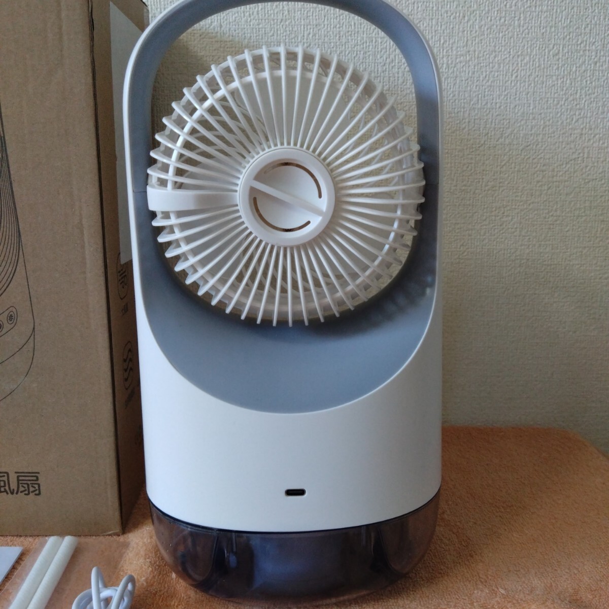 電源投入でファンとライト、ミストが出る事は確認済み。元箱をプチプチ梱包で発送
