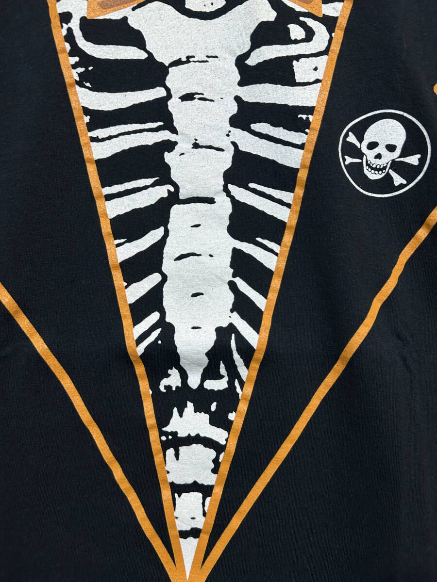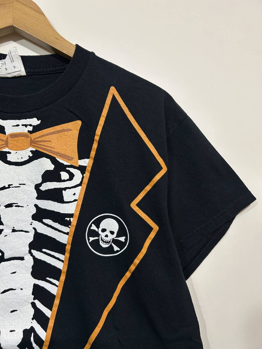 ● GILDAN US古着 騙し絵風 プリント 半袖 Tシャツ 黒 ブラック M タキシード 骨 骸骨 ドクロ スカル 蝶ネクタイ 00s アメリカ古着
