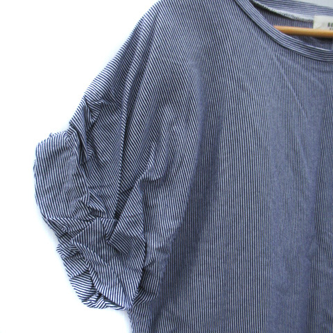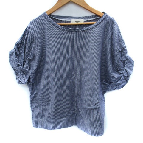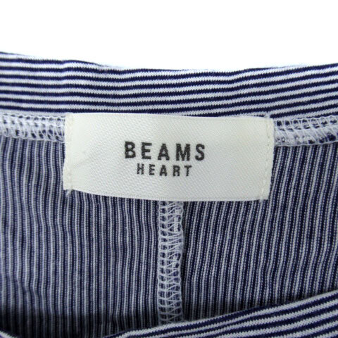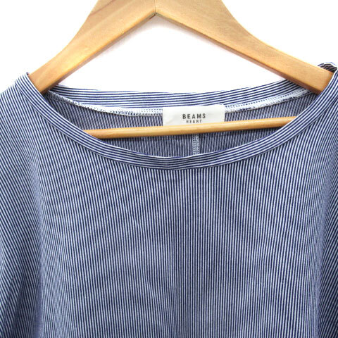 ビームスハート BEAMS HEART カットソー 半袖 ラウンドネック ストライプ柄 青 ブルー 白 ホワイト /SM16 レディース