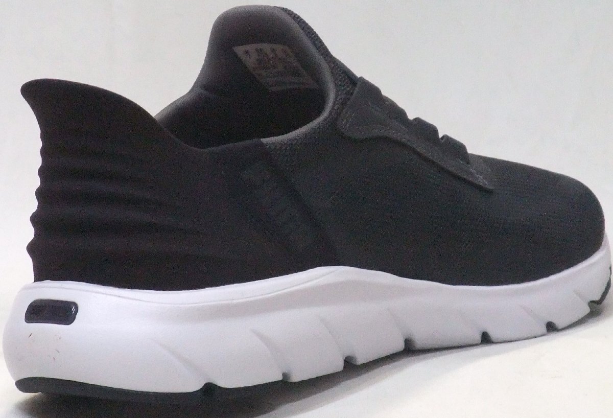 シュータン一体型のスリッポン構造の履き口、かかと部分が柔らかく、立ったままでも簡単に足入れが可能です。