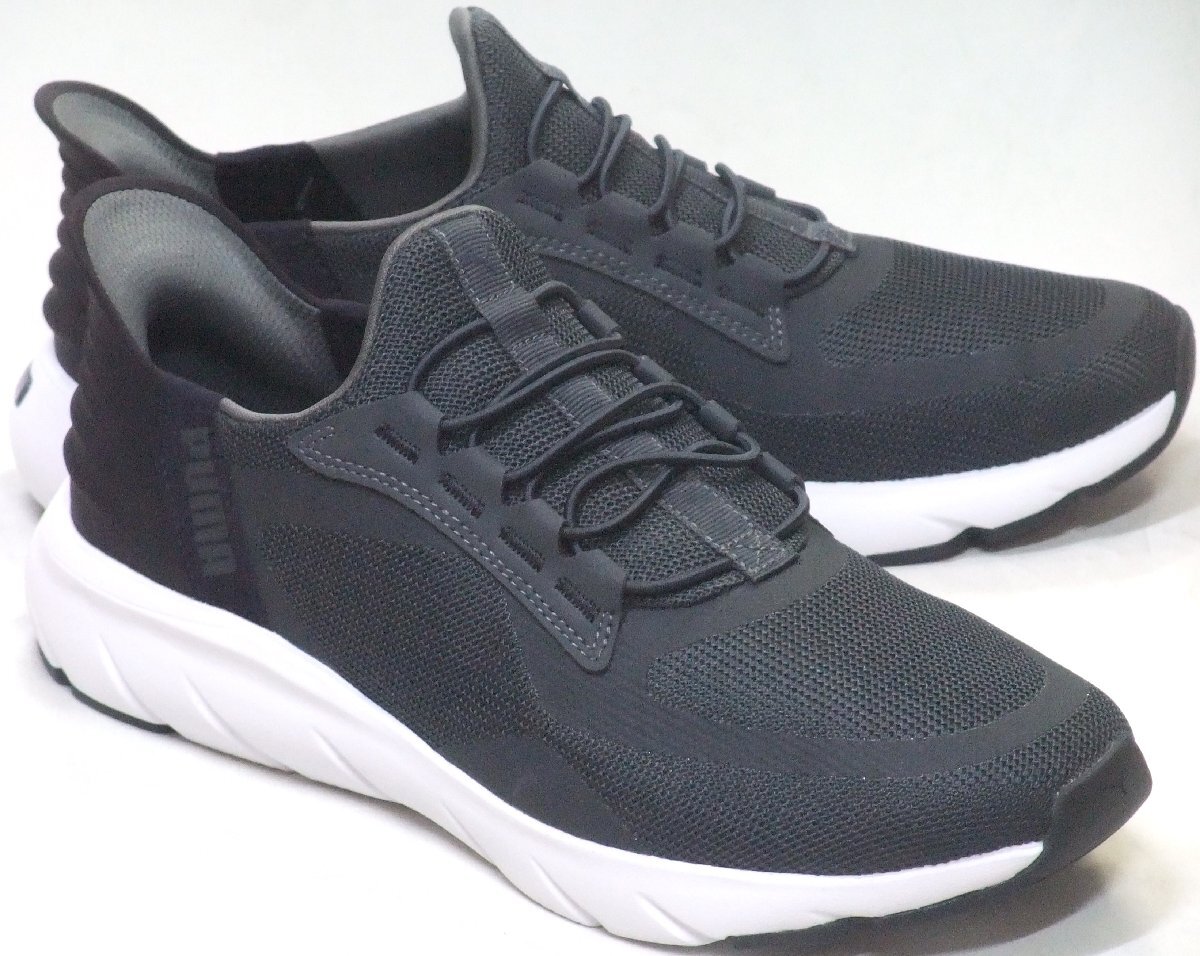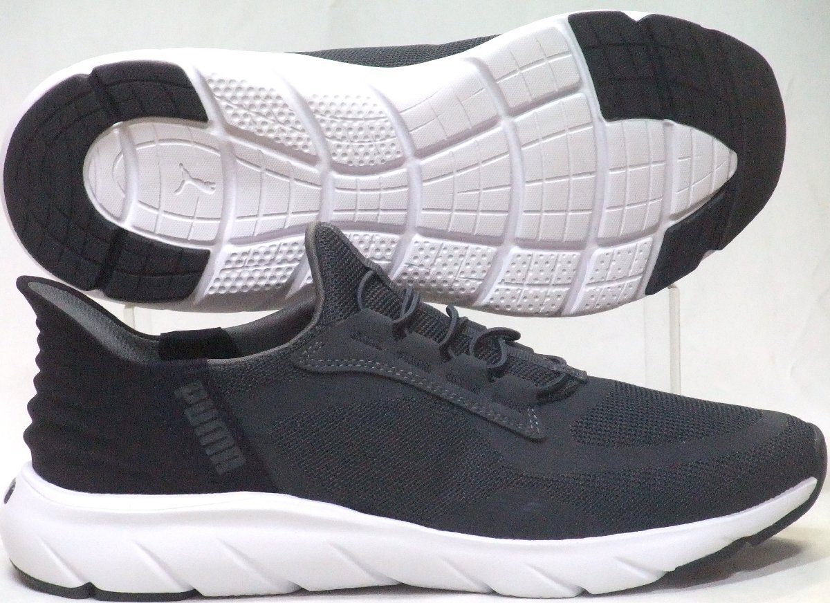 送料無料 PUMA プーマ ソフトライド フレックス レース イーズイン ワイド グレー 27.5cm ウォーキング ワンステップ スリッポンスニーカー