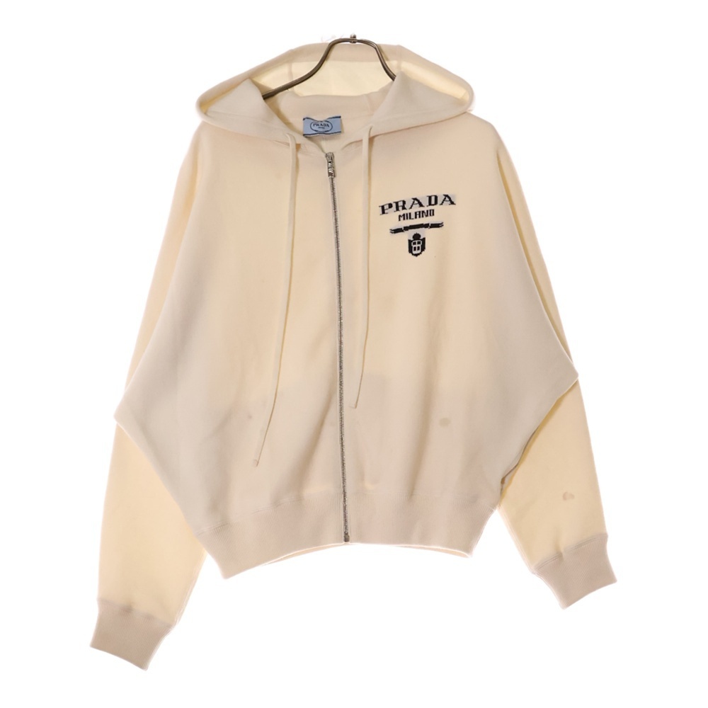 PRADA プラダ ロゴ刺繍 カシミヤジップアップフーディ ニット ホワイト P25I96 S212 10F4