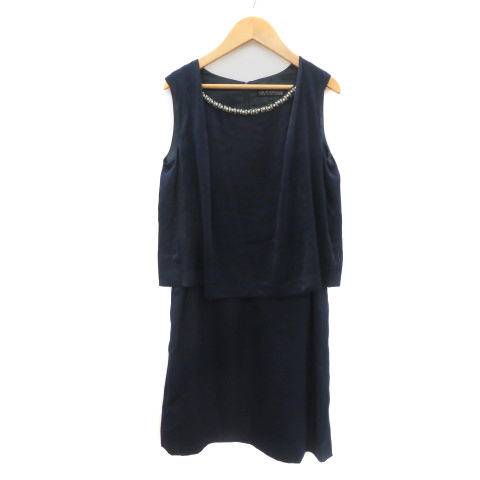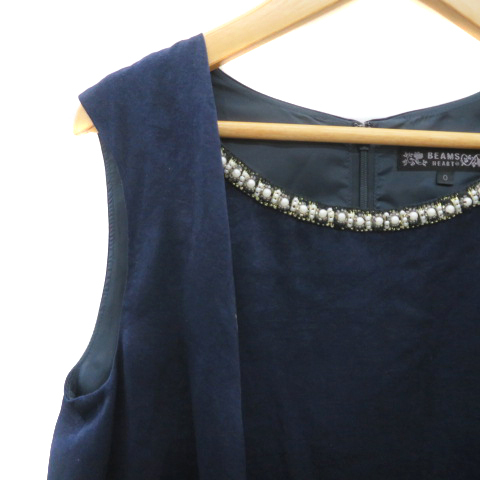 ビームスハート BEAMS HEART ドッキングワンピース ひざ丈 パールビーズ ビーズ 0 紺 ネイビー /YK29 レディース