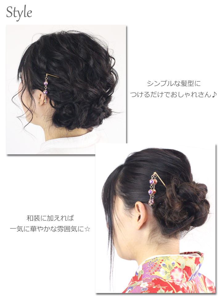 商品説明 | 和風ビーズとしずくクリスタルビーズが和装に華やかさをプラスしてくれます♪ かんざし本体は細身で上品な印象に☆ 細やかな丁寧な作りの高品質な日本製です。 チャームは取り外し可能です。チャームのみの販売もあります。 |