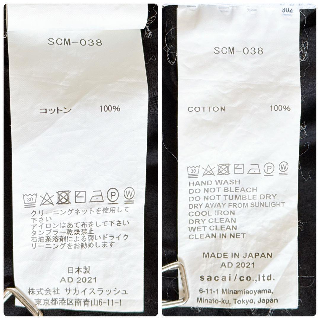 sacai サカイ ドッキングシャツ SCM-038 コットンポプリンシャツ 2021年モデル 長袖シャツ 異素材切替 デザインシャツ ブラック ブラウン メンズ 正規品