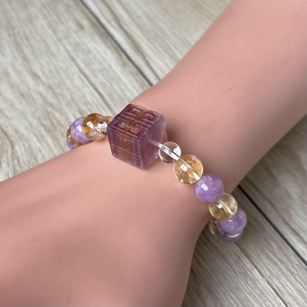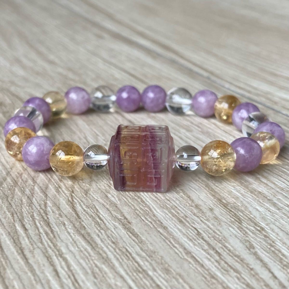 フローライトに回紋珠が彫られている事でお守りや災い避けとなってくれるでしょう