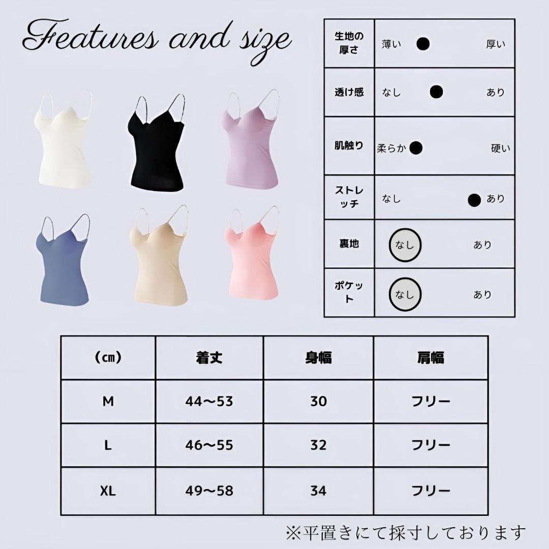 夏は1枚で涼しく、春・秋・冬は下着やインナーとして活躍するオールシーズン対応のブラスリップ。軽くて伸縮性も高く、圧迫感のないフィット感で着る人の体型を美しく見せる設計です。おしゃれで実用性も兼ね備えた、女性のライフスタイルに寄り添うインナーです。