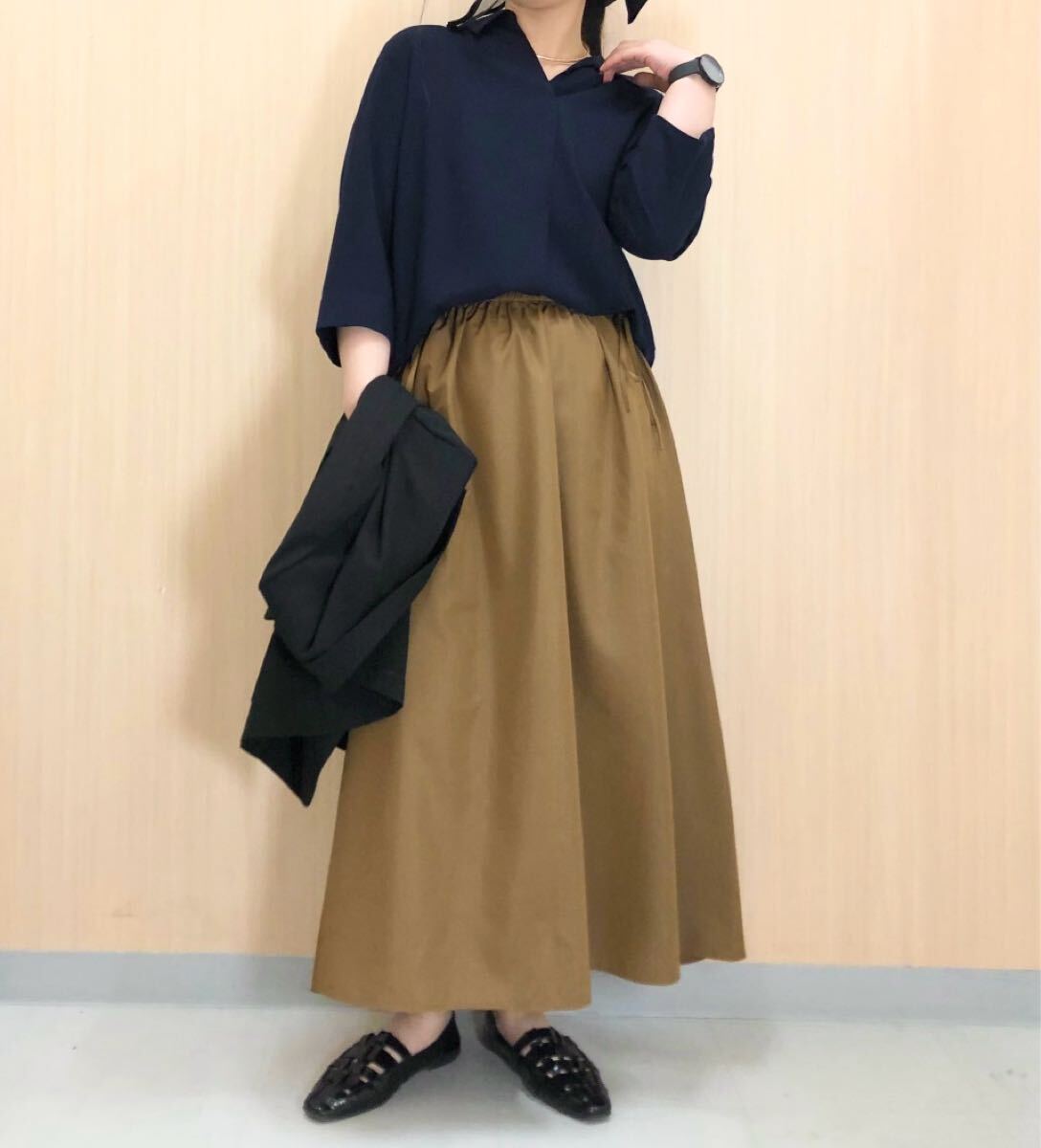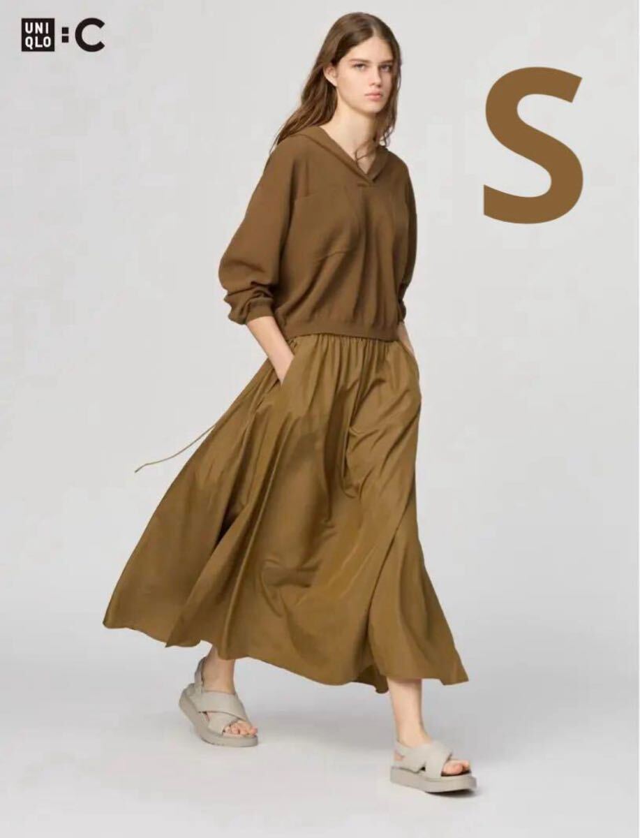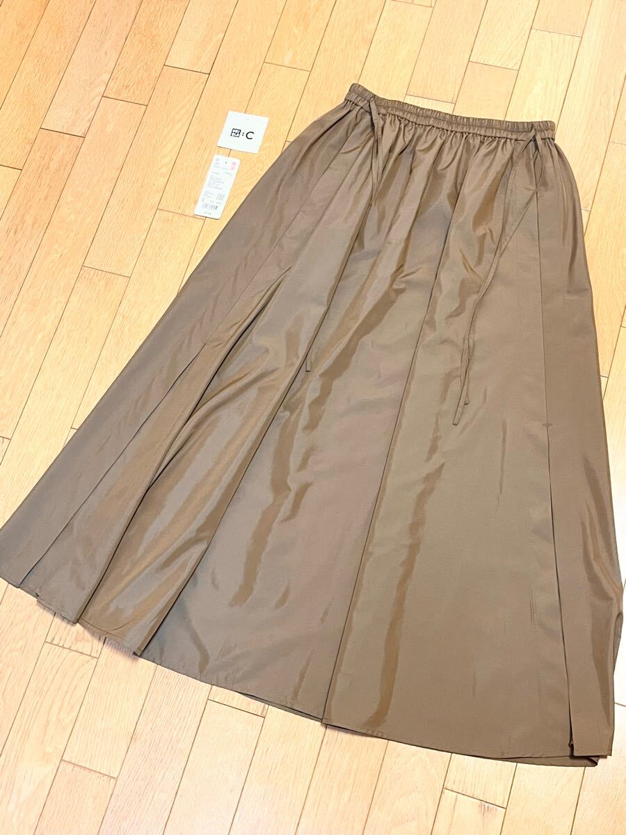 UNIQLO ユニクロ ギャザーロングスリットスカート ブラウン ベージュ S