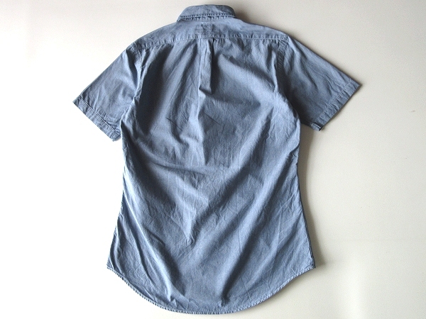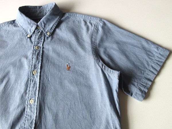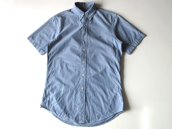 希少 00sビンテージ Ralph Lauren ラルフローレン CUSTOM FIT ロゴ刺繍 コットン ベタシャン 半袖 BDシャツ S インディゴ USA企画 ネコポス