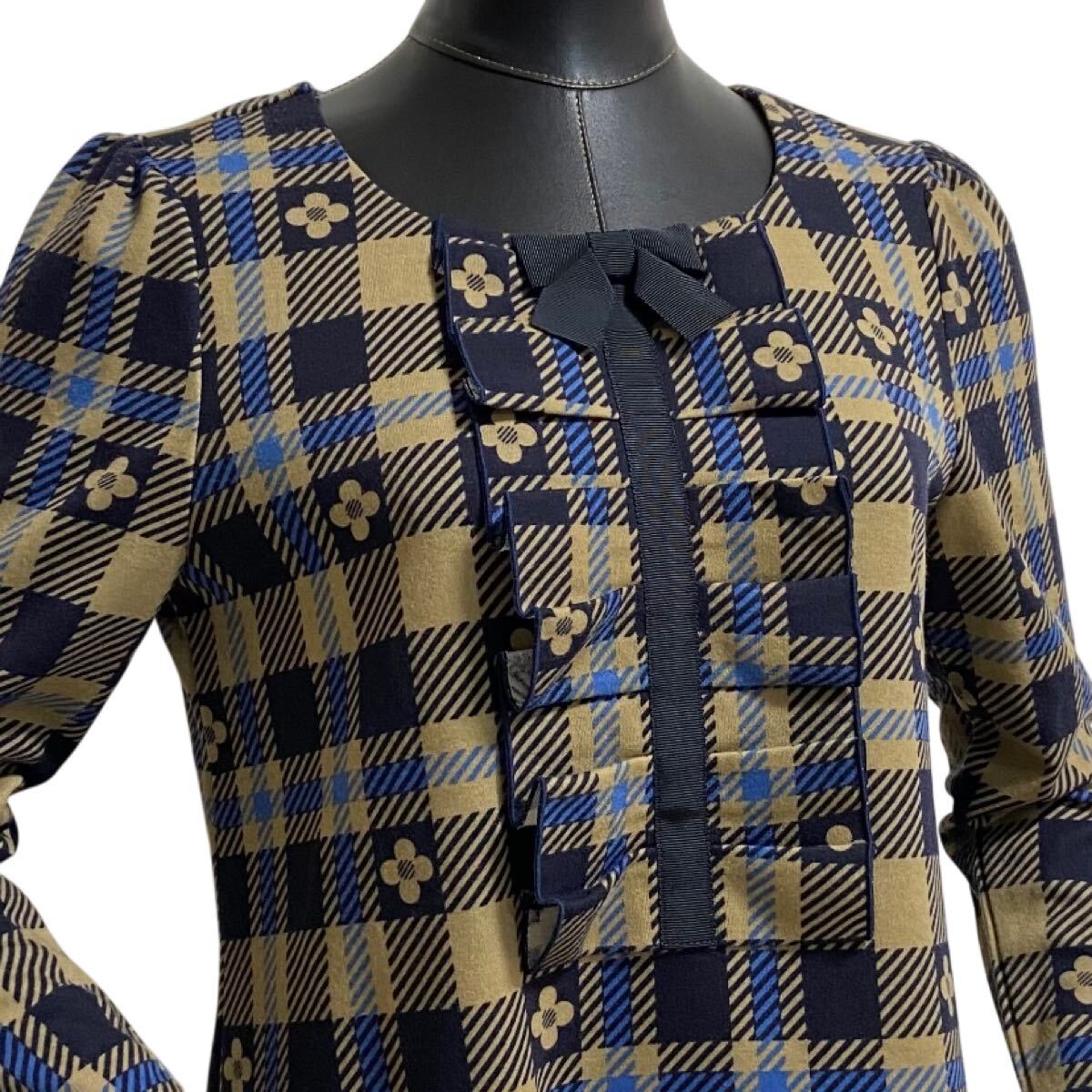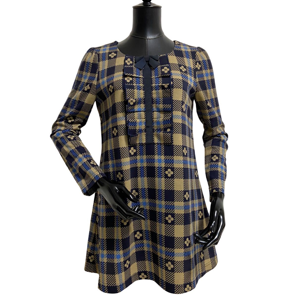 ギャラリービスコンティのストレッチワンピース。新品。完売品。コットンタッチの選び抜かれたファブリック。ストレッチ性を備えた身体馴染みの良い生地。ストレスのない極上の着心地。可愛いチェックパターンとデイジーボタニカル。フロントリボンも魅力。ボディラインを美しく表現する考え抜かれたシルエット。ノーカラーでお顔周りすっきり。お色はミルクティーチェック。日本製。国内正規品。裏地無し。プルオーバータイプ。
