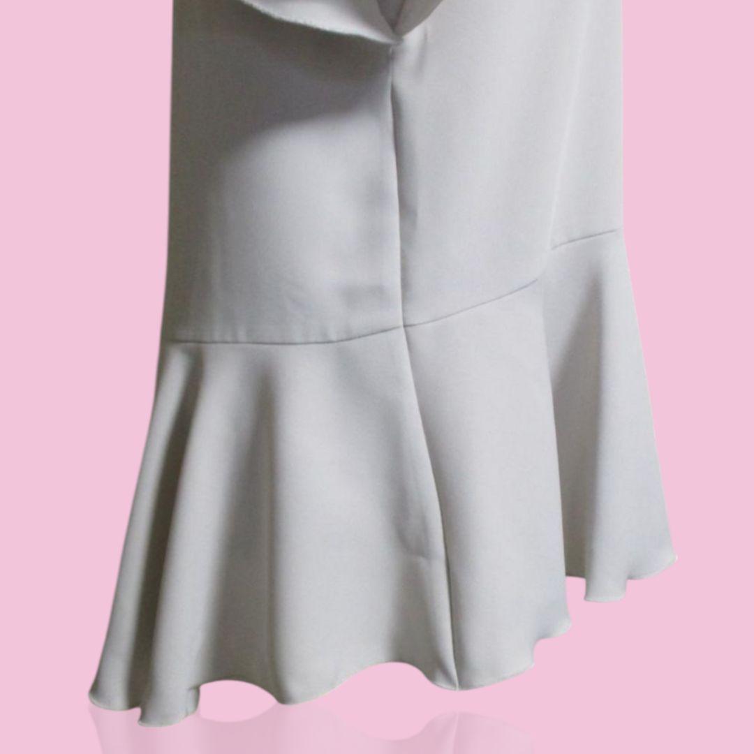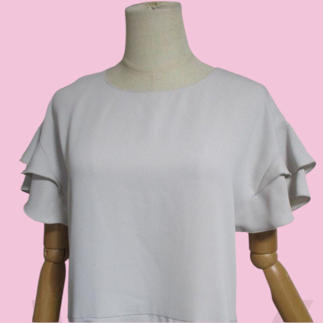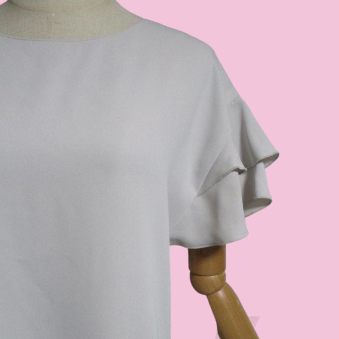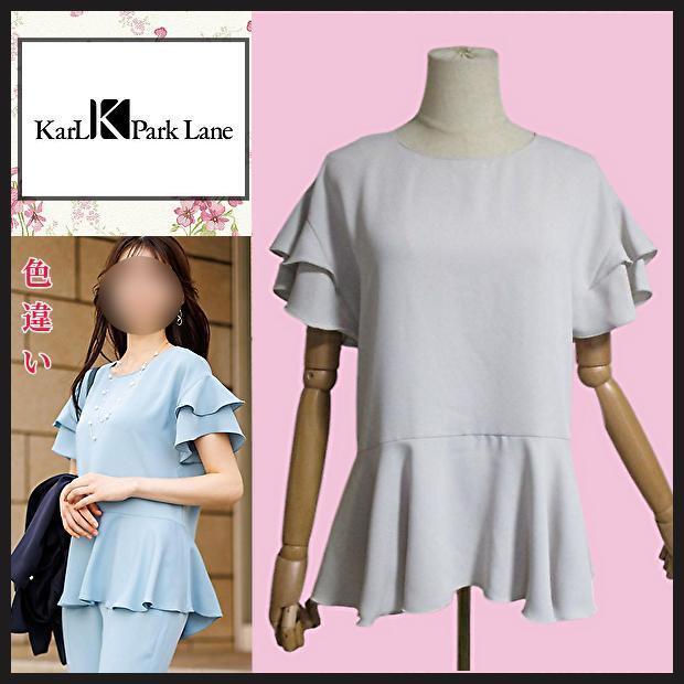 【カールパークレーン】ダブルクロスフリル二重袖ブラウス グレー 9号 チュニック KarL Park Lane 14080円 通勤 お食事会 お呼ばれ