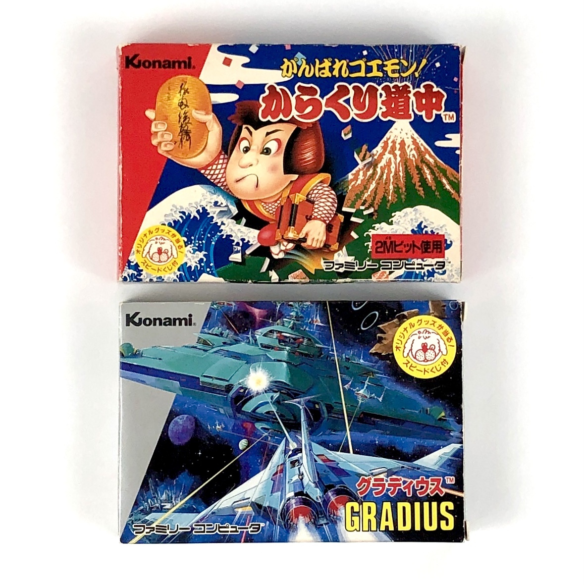 【送料無料】 ファミコン グラディウス + がんばれゴエモン からくり道中 箱説付き 2本セット 痛みあり 動作確認済み コナミ