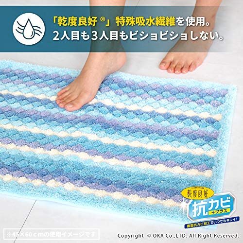 【お買い得品】 乾度良好 ブルー 速乾 吸水 バスマット オカ 抗カビプラス 約50×70cm
