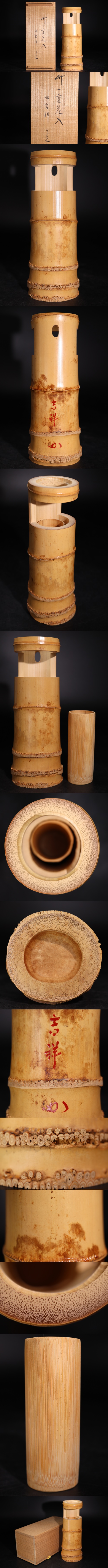 | 表千家 堀内宗完 花押 識箱 「 竹 一重 花入 銘 : 吉祥 」 / 竹工芸 竹根 竹細工 花器 壁掛け 煎茶飾 .G2106 |
