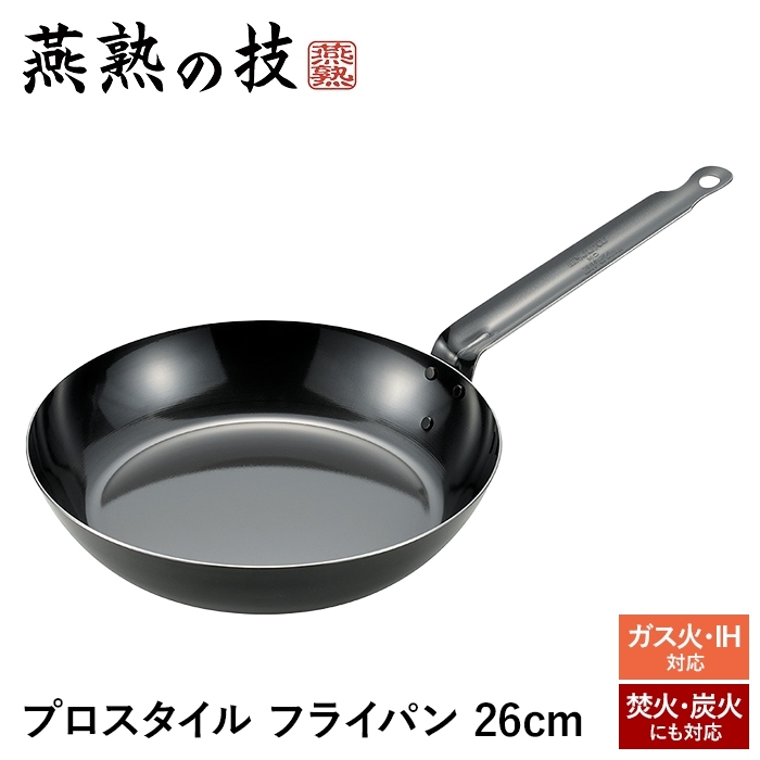 | 「熟練の技巧 信頼の日本製」 古くから金属加工が盛んな新潟県燕市で作られた、 ハンドルも耐久性に優れた鉄製のプロスタイルの26cmサイズのフライパン。 鉄製なのでガス火はもちろんアウトドアでの焚き火・炭火にもご使用いただけます。 グリルやオーブンにそのまま入れて調理も可能。 そのままテーブルにも置くことが出来ておしゃれに使えます。 ハンドルにはロゴが彫刻されておりおしゃれです。 表面にはシリコン樹脂塗膜がほどこされているため、塗装の焼き切りが必要が無く、すぐに調理を始める事が出来ます。 ※シリコン樹脂塗装自体は調理しているうちに自然に取れていきますが、食品衛生法の規格に適合したもの使用していますので体内に入っても吸収されず体外に排出されてしまうので安心してご使用ください。(人体には無害です) ※使い始めは、シリコン樹脂塗膜がほどこされているため、保護されるのでさびにくい状態ですが、使い込んでいくと塗膜も取れてしまい鉄製の為さびやすい状態になりますので、鍋の表面に薄く油を塗るようにしてください。 ※ハンドルも鉄製の為、調理中や直後には熱くなります。ミトンや鍋つかみ等をご使用下さい。 ※食洗器不可 |