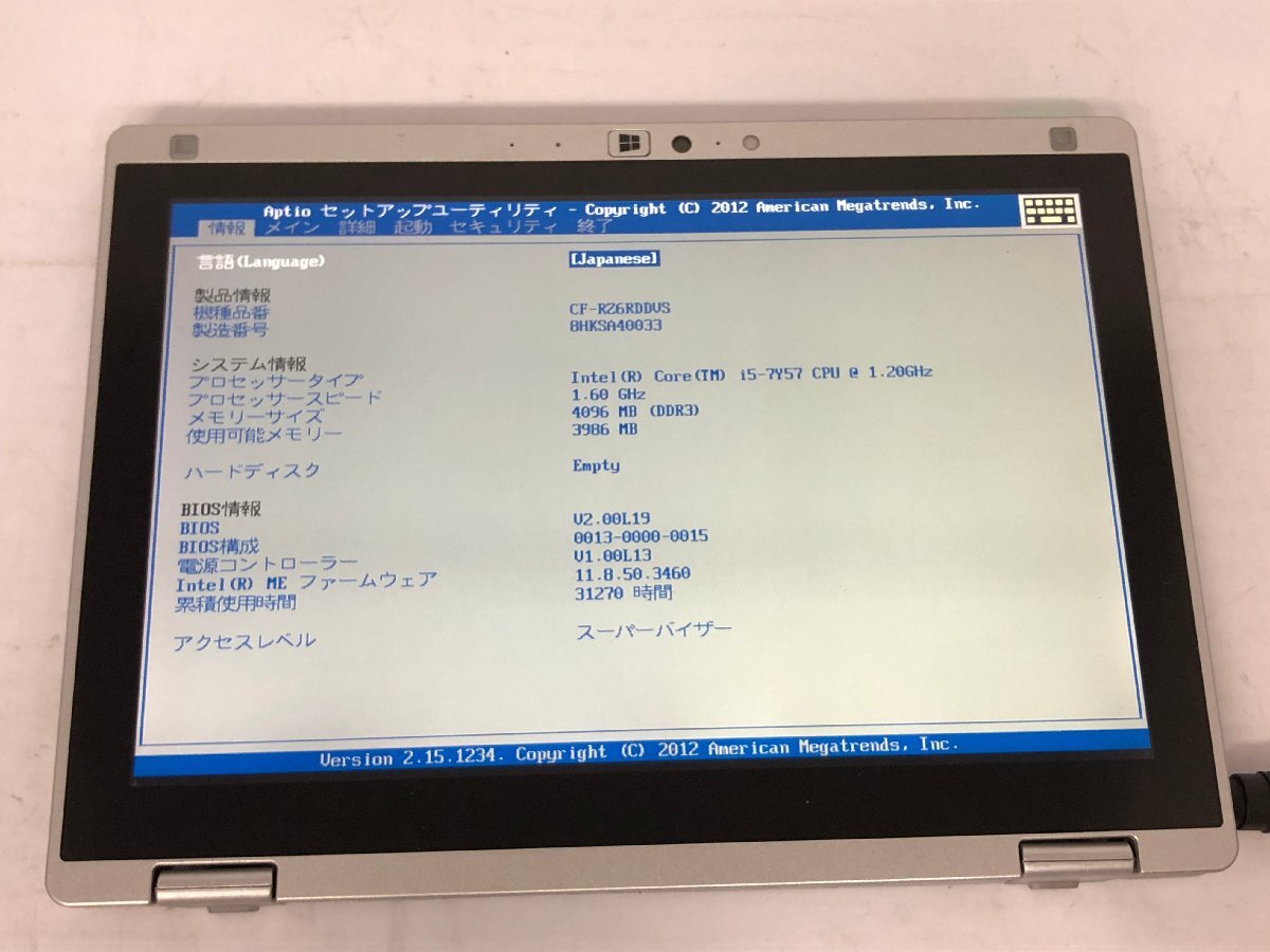 ジャンク/ Panasonic CF-RZ6RDDVS Intel Core i5-7Y57 メモリ4.1GB ストレージ無し 【K18436】