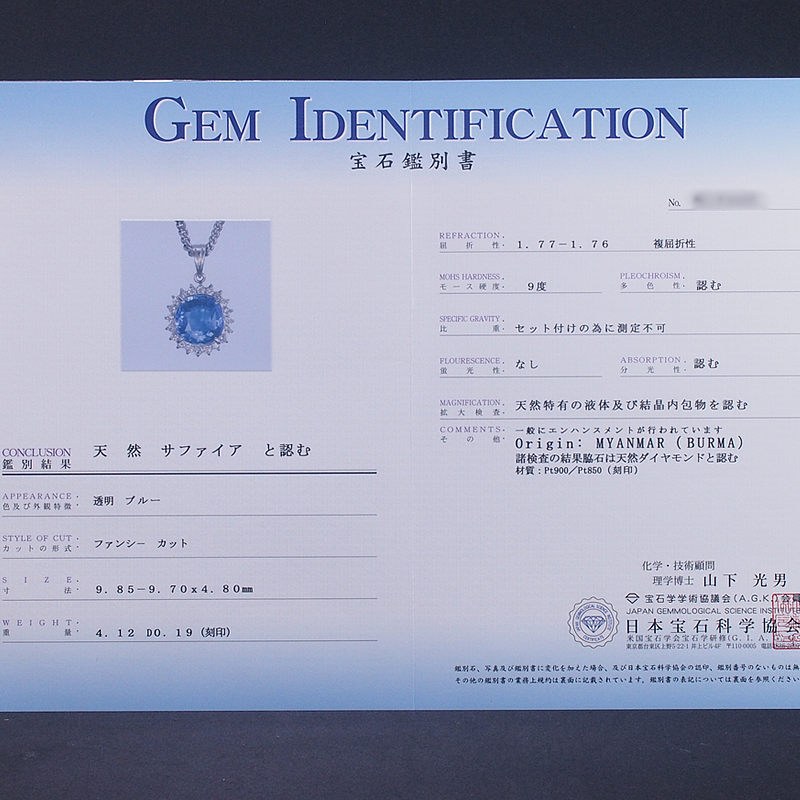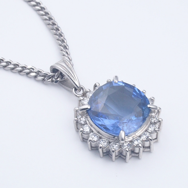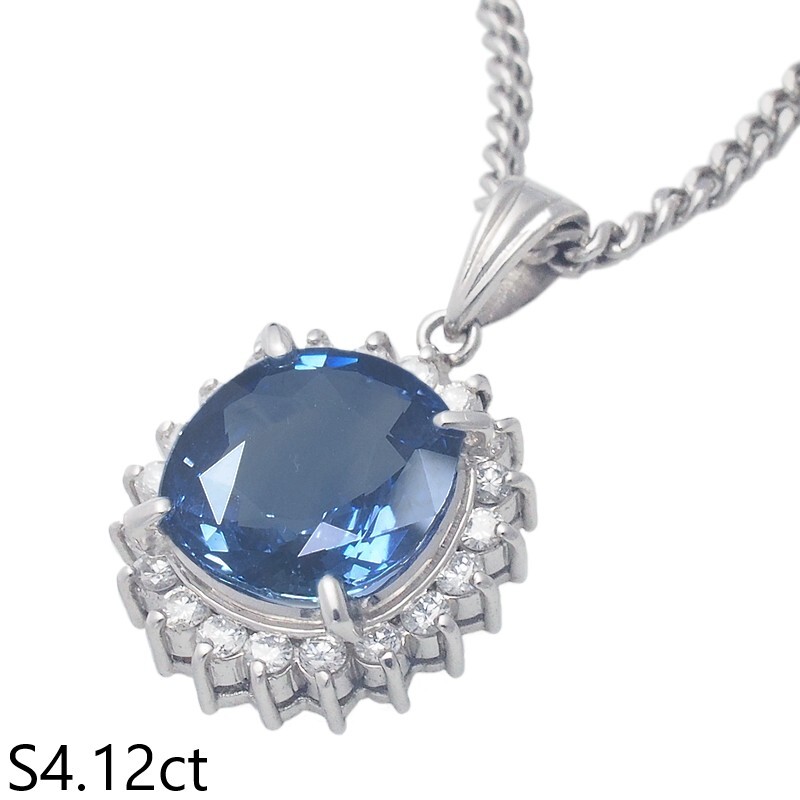 詳細:ノーブランド サファイア/4.12ct ダイヤ/0.19ct Pt900/Pt850 デザイン ネックレス 鑑別書付き 仕上済