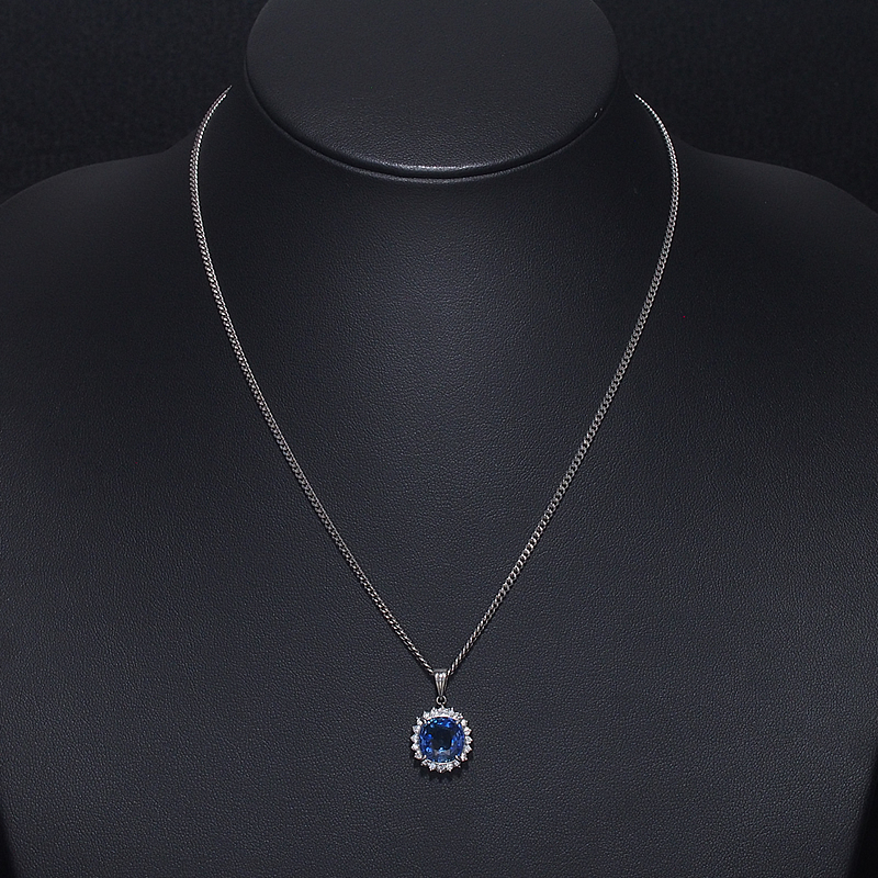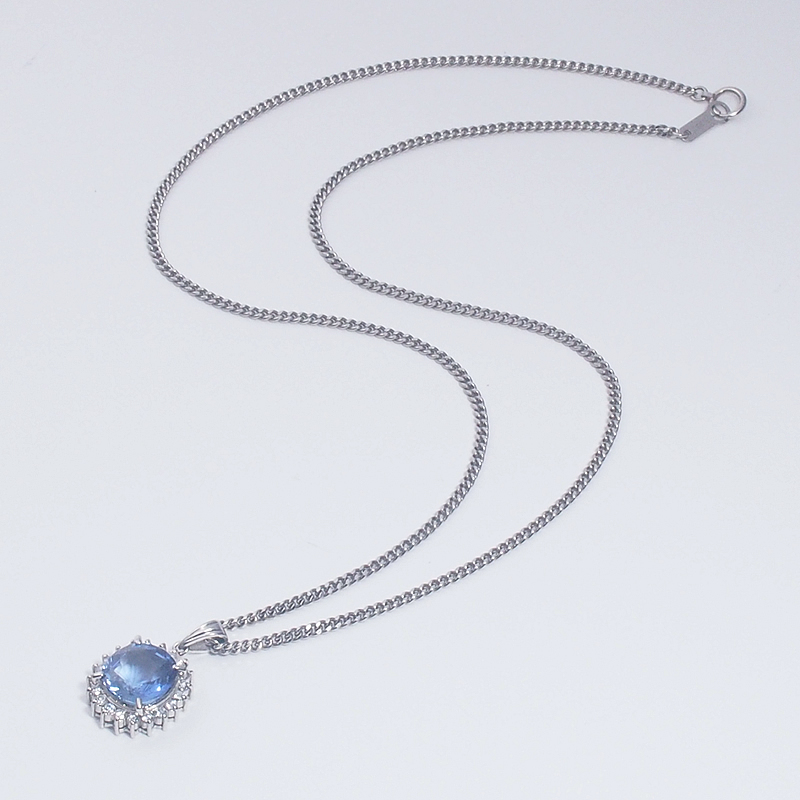ダイヤモンドの白い輝きとサファイアのブルーのコントラストが大変ゴージャスなネックレスです。