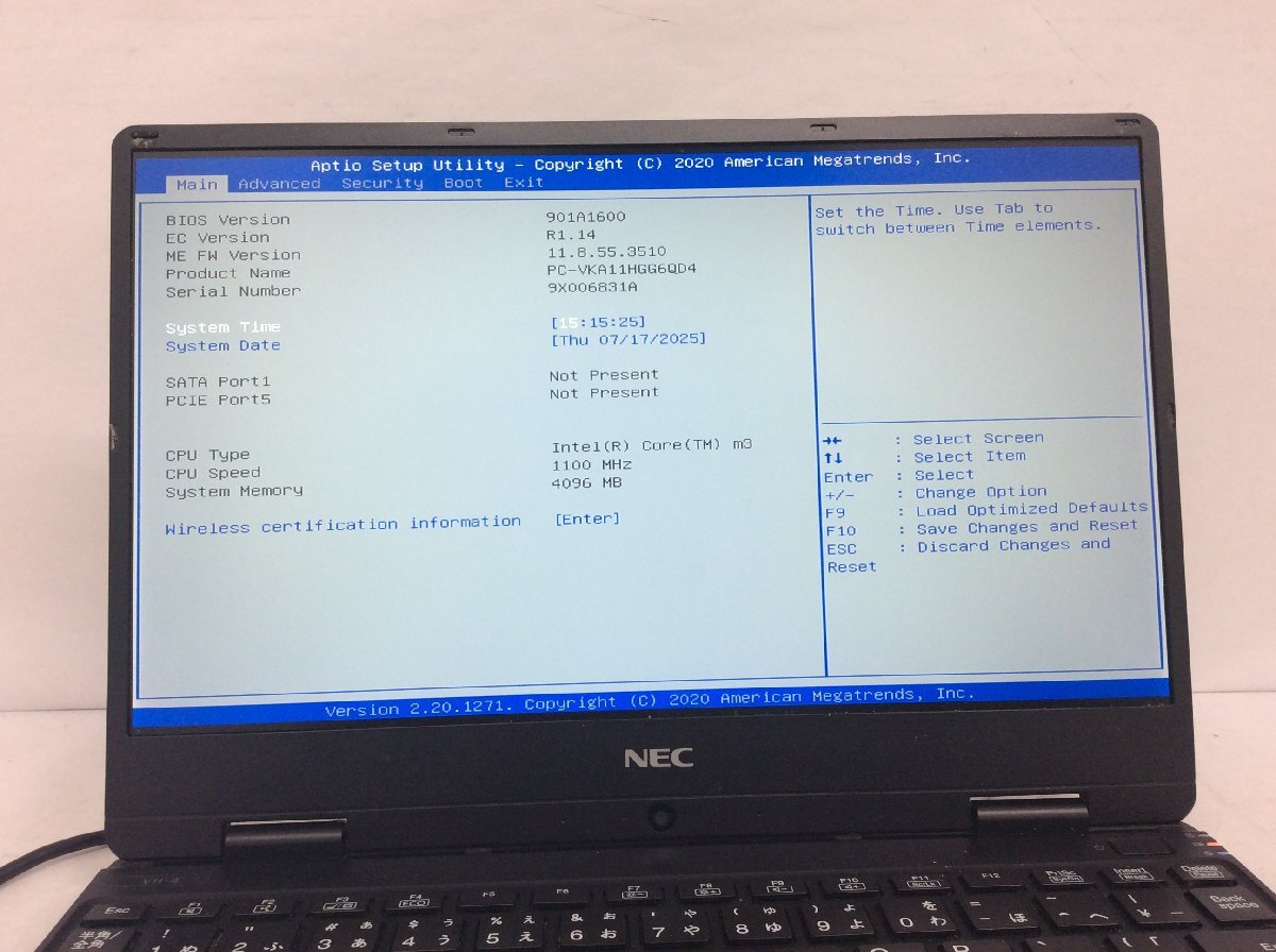 ジャンク/ NEC PC-VKA11HGG6QD4 Intel Core m3-8100Y メモリ4.1GB ストレージ無し 【K18415】