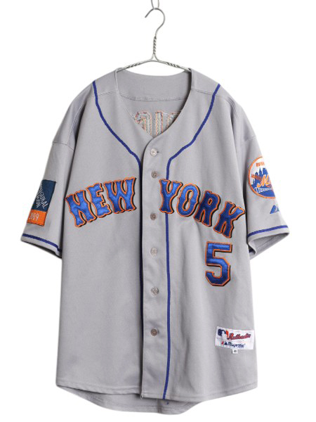 MLB オフィシャル NEW YORK METS ニューヨーク メッツ 半袖ベースボールシャツです。 ボディーは、Majestic ATHLETIC( マジェスティック ) 1950年代創業、MLB公式ユニフォームのサプライヤーとして 全球団のユニフォームにロゴを配することを許可された唯一のブランド 素材表記タグ読み取り不能ですが、 選手が実際に着用するグレードの高い 伸縮性のあるジャージ素材を使用しています。 フロントにMLB、人気チーム、メッツのワッペン とナンバリング 右袖に、INAUGURAL SEASON 2009年からのメッツの本拠地、シティ・フィールドの開場記念ワッペン バックに2004年~2018まで活躍した デビッド・ライト(David Wright)のネームと背番号5 メッツ一筋、第4代主将も務めたレジェンドプレイヤー グレー x ブルー x オレンジの好配色のチームビジターカラー そのままでももちろん、重ね着にもお勧め 中にパーカーやスウェットを差し込める 大きいサイズ XL程 着まわしの利く商品です。 |