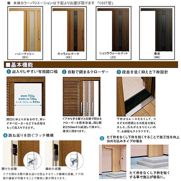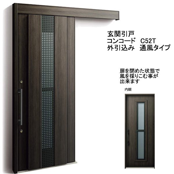 | ■商品名 | アルミサッシ 玄関引戸 コンコード 外引込タイプ C52T 通風タイプ |