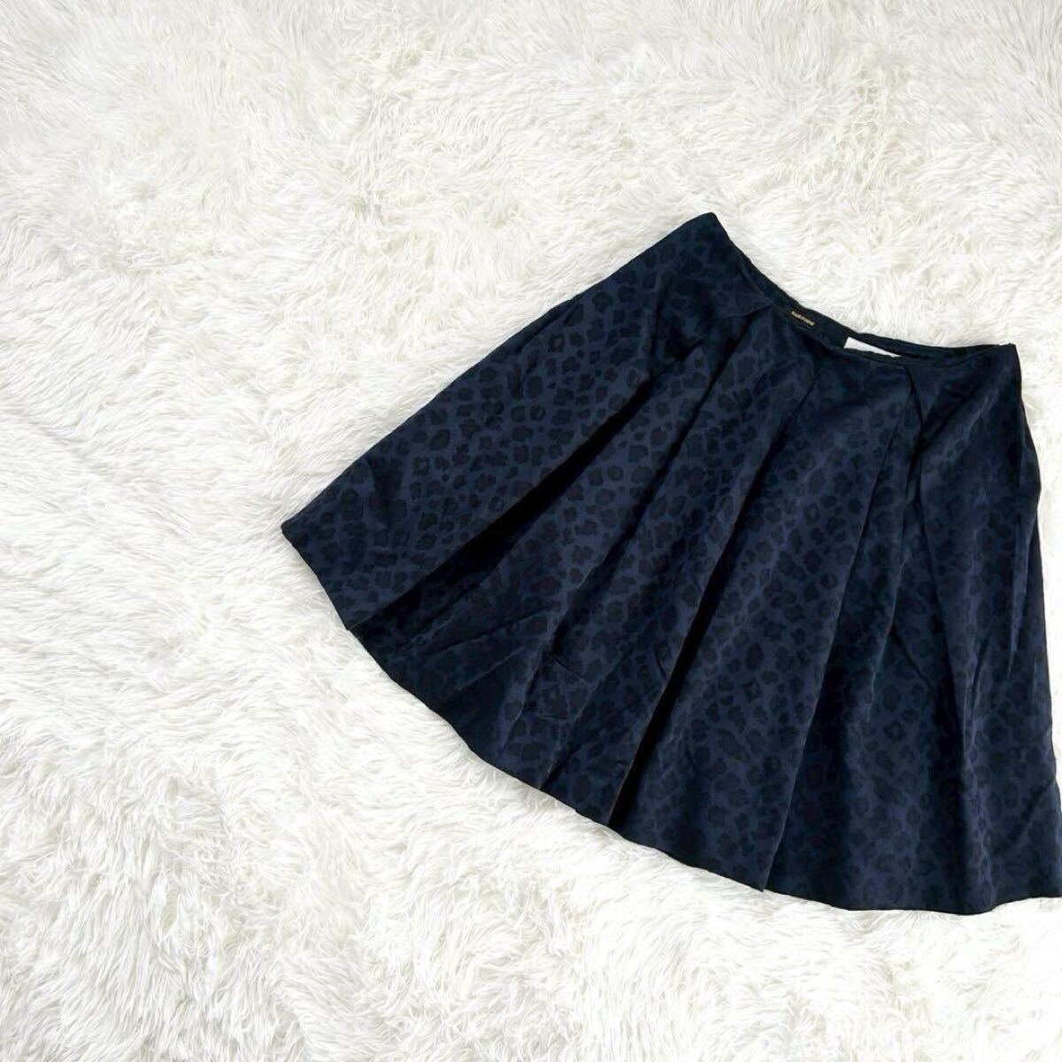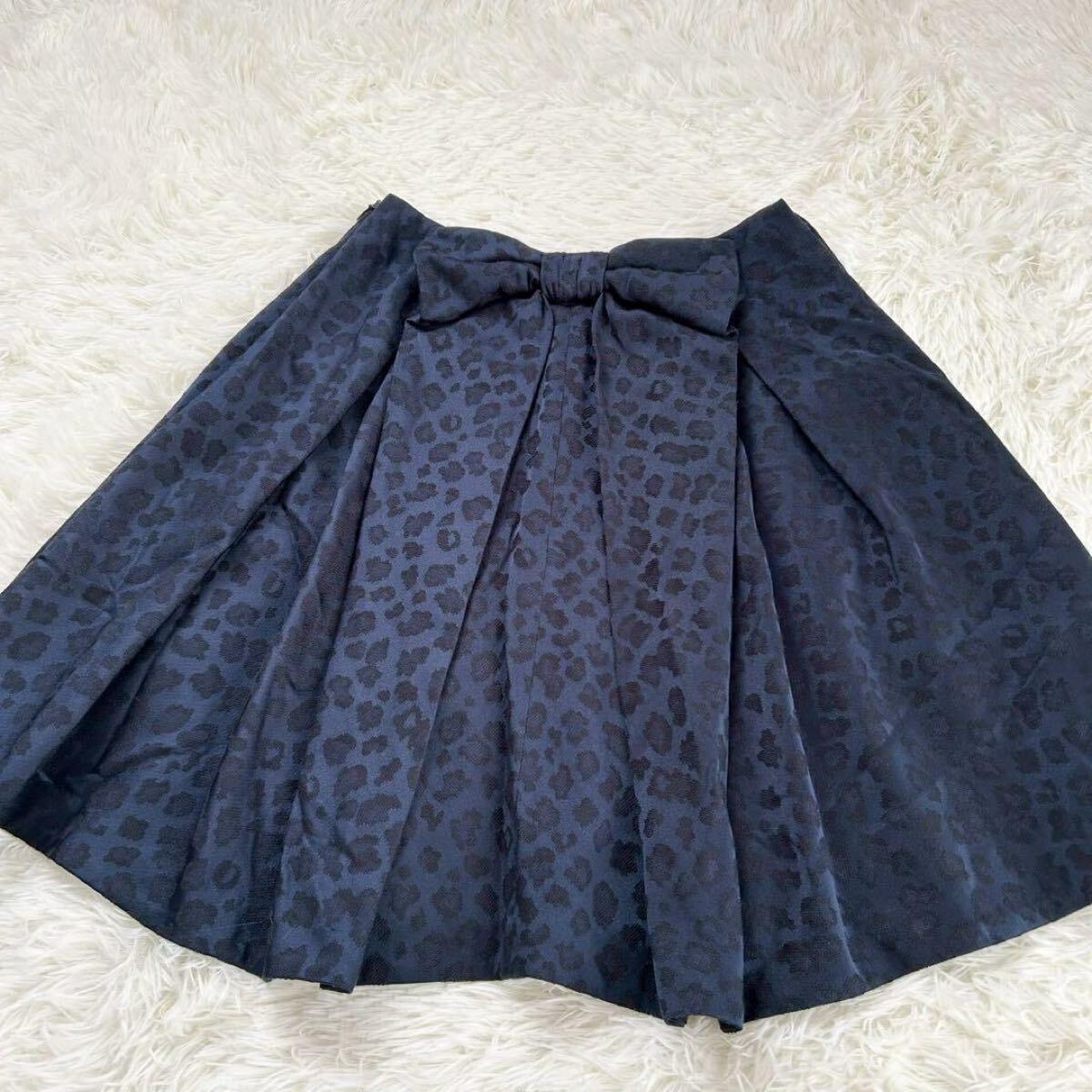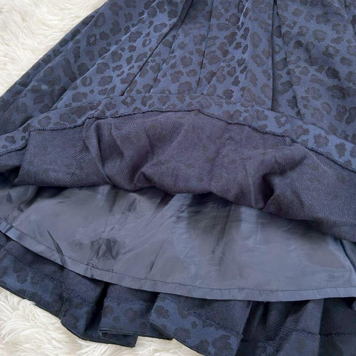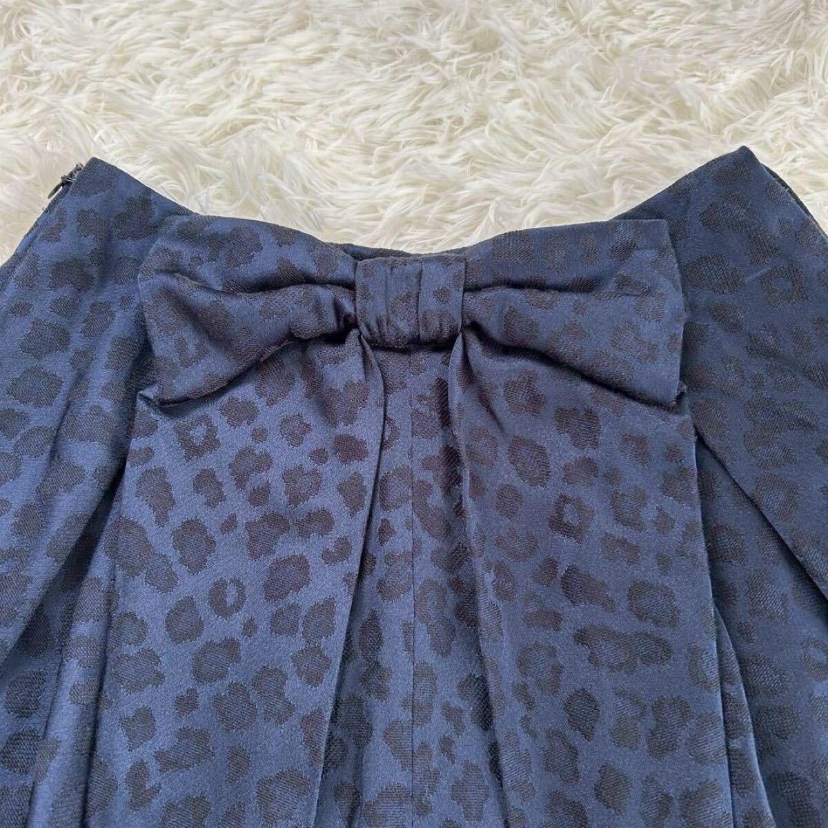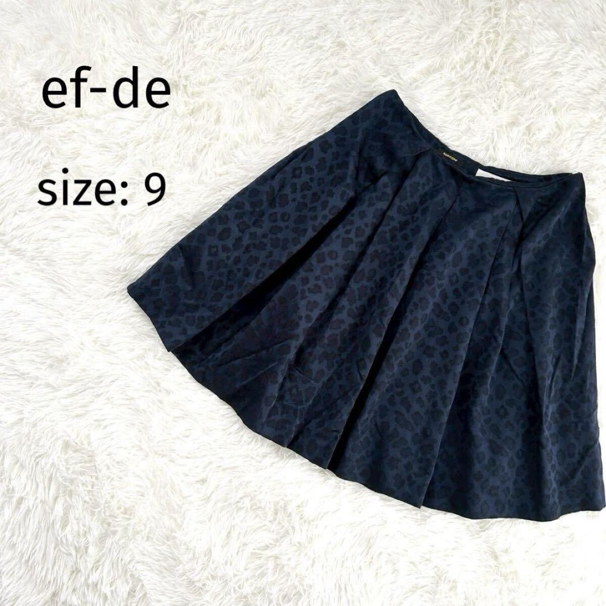 エフデ ef-de 上品ヒョウ柄 膝丈 ネイビー きれいめ リボン付 レオパード
