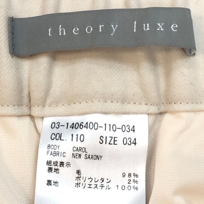 | 商品説明 | 【管理番号】 014798s 【ブランド名】 Theory luxeセオリーリュクス 【アイテム】 ウールパンツ 【サイズ】34 【サイズ】 34 平置採寸(ウエスト:約32cm総丈:約88cm 股上:約22.5cm 股下:約66.5cm・わたり幅:約24.5cm・裾幅:約15cm) 【色・柄】 アイボリー 【素材】 表地:毛98%ポリウレタン2% 裏地:ポリエステル100% 【外観ランク】ABランク 【商品補足説明】 ウエストは後身頃のみゴム仕様です。 | ||