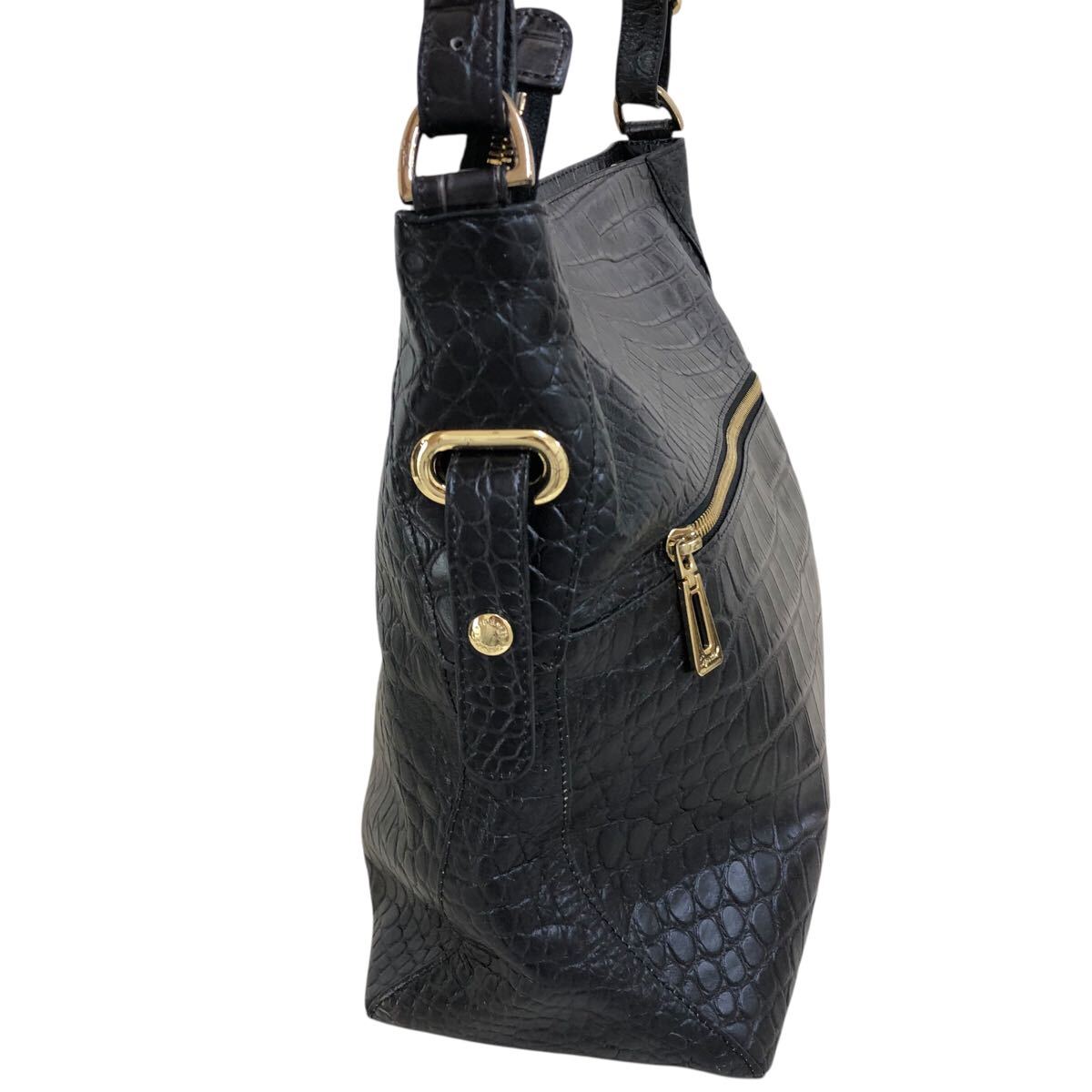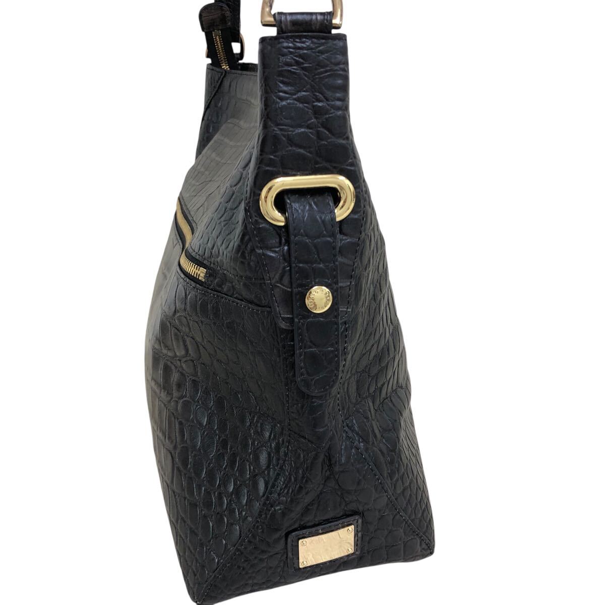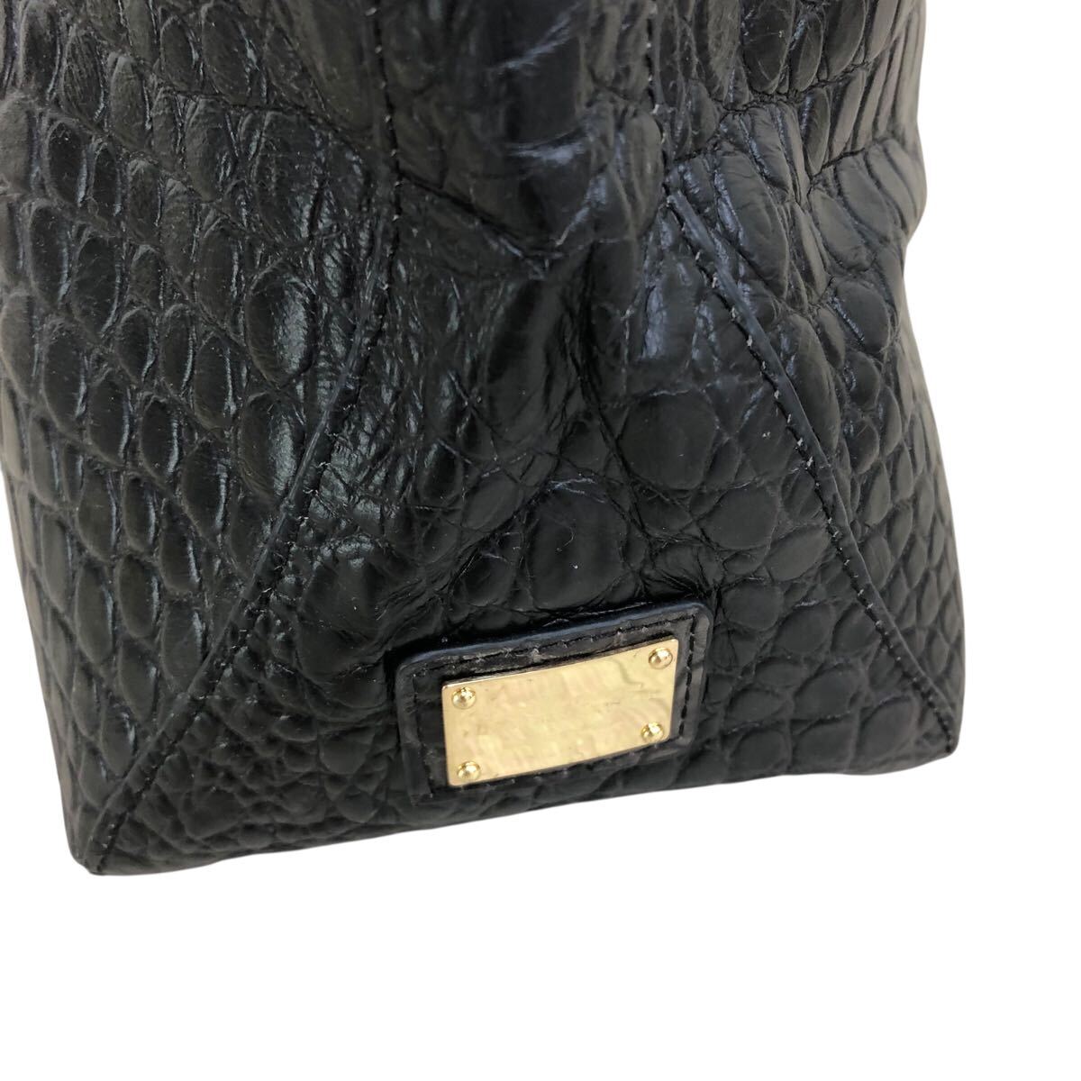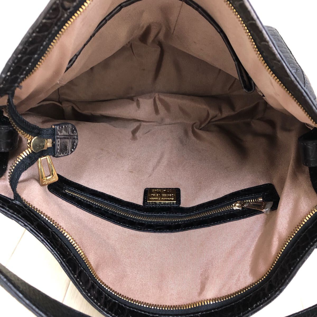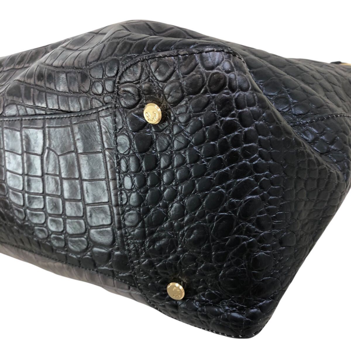 h058-67 本革 LEATHER JEWELS レザージュエルズ レザー クロコ型押し ハンドバッグ 肩掛け バッグ 黒系 鞄 カバン bag 良品