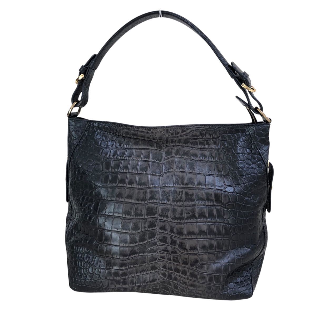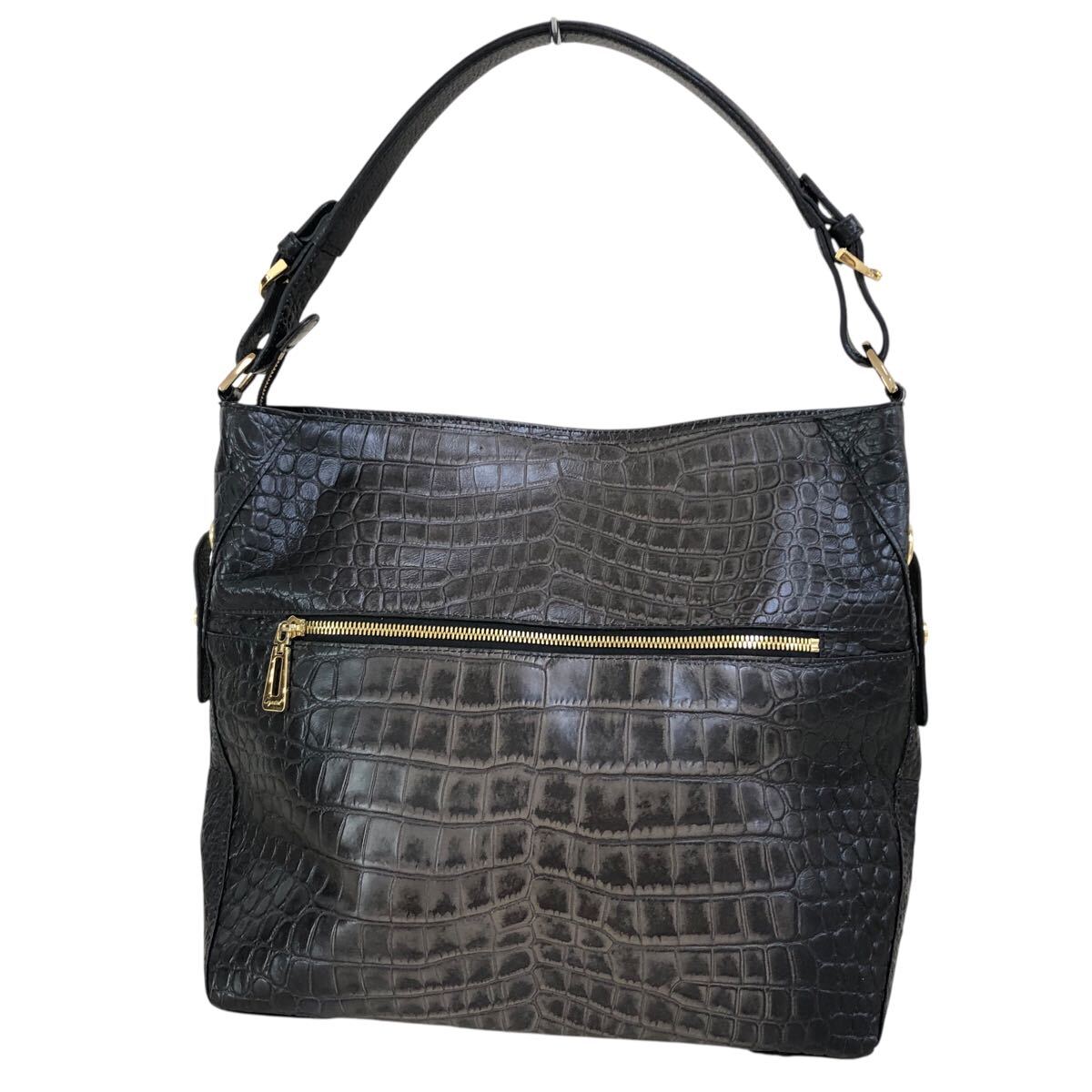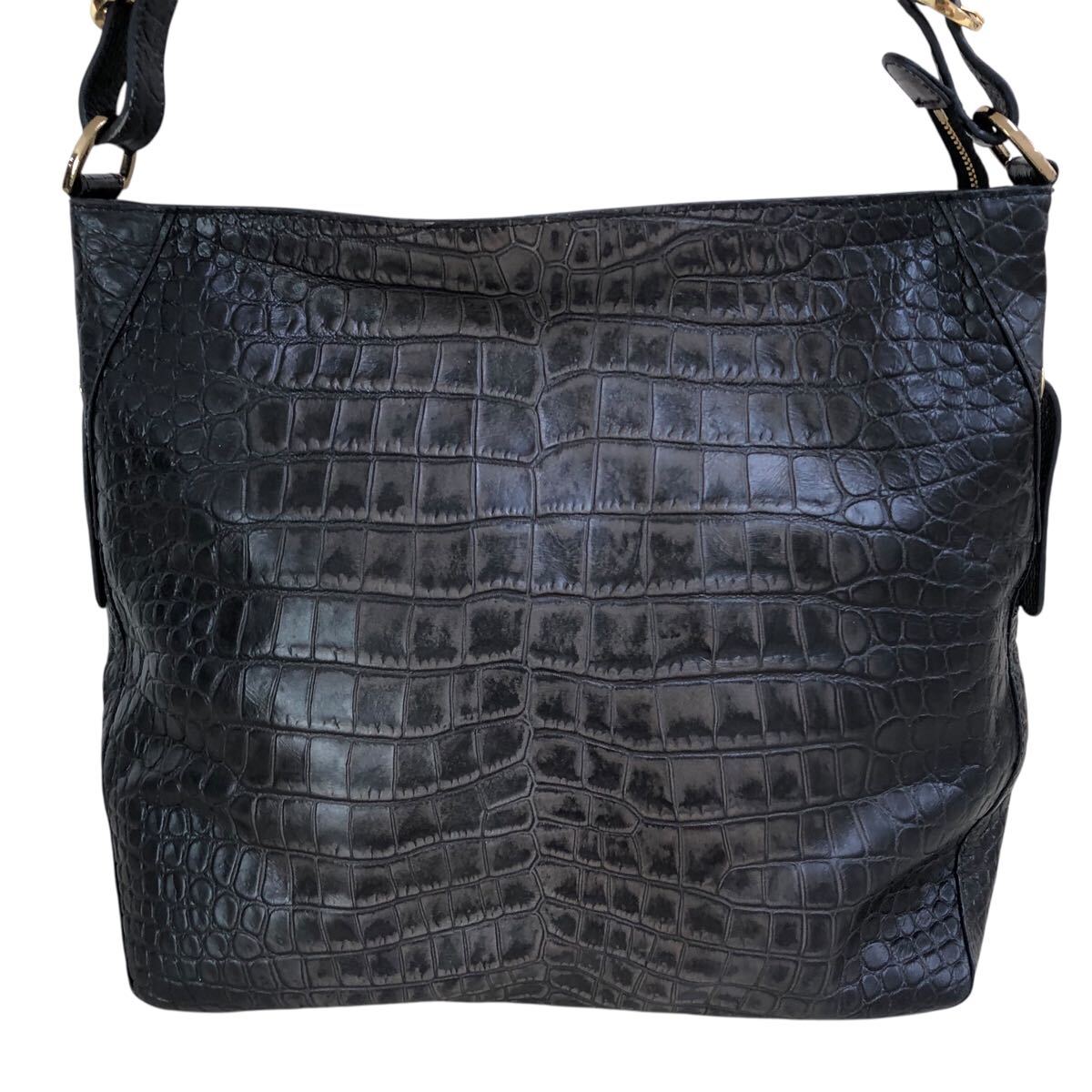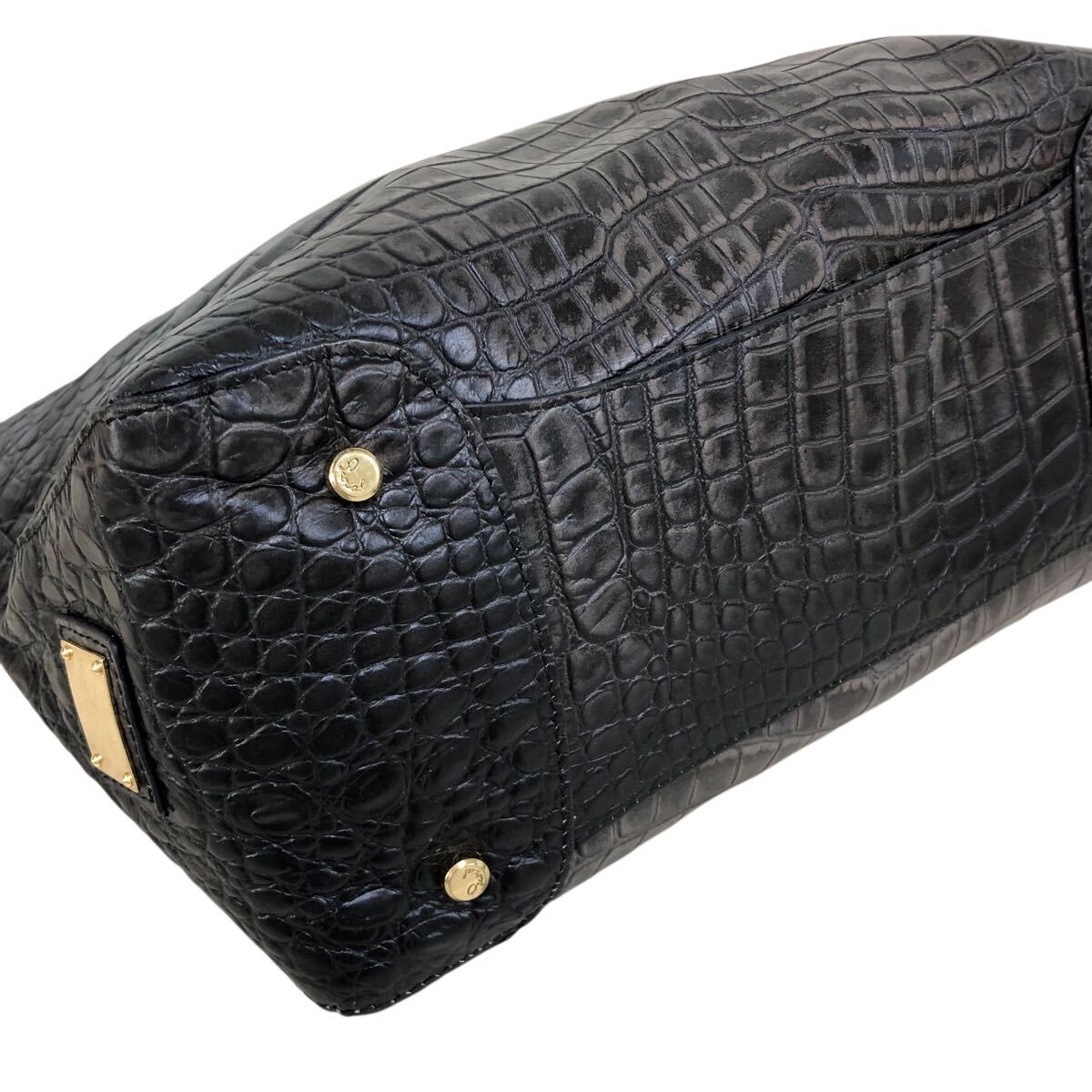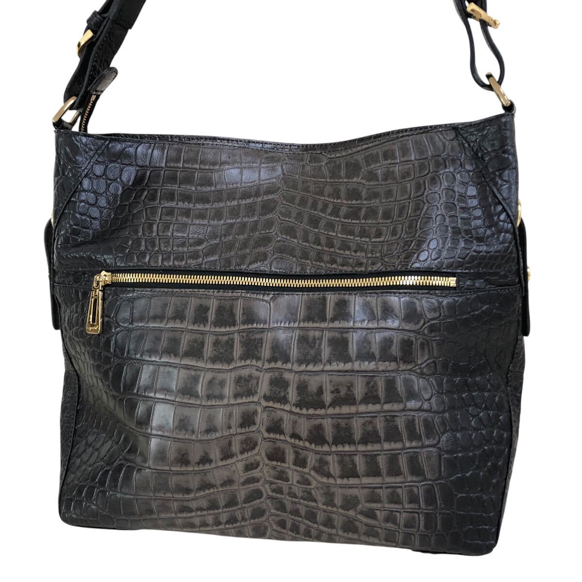 h058-67 本革 LEATHER JEWELS レザージュエルズ レザー クロコ型押し ハンドバッグ 肩掛け バッグ 黒系 鞄 カバン bag 良品