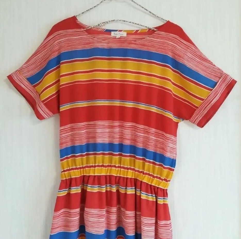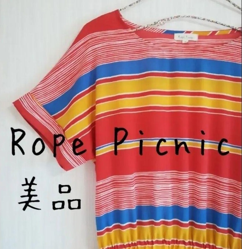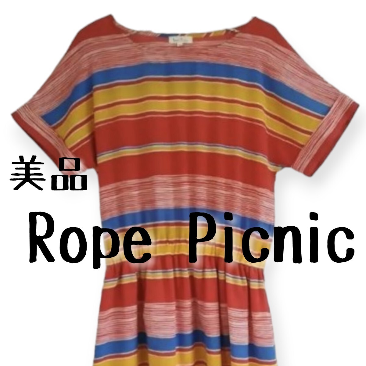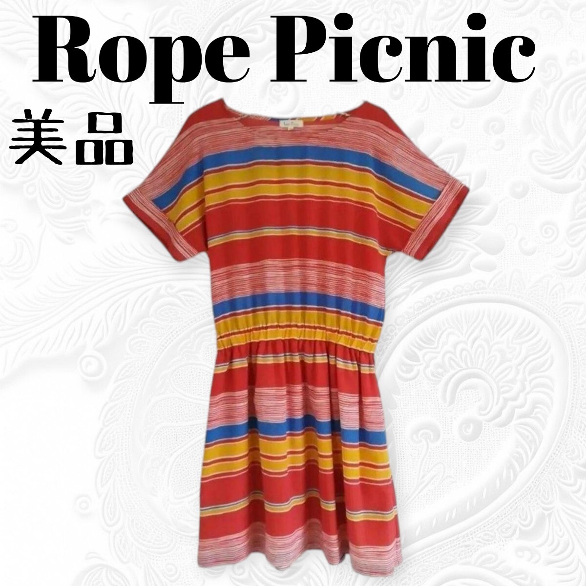 美品 Rope Picnic ロペピクニック カラフルボーダー レトロ半袖ワンピース 夏 カジュアル