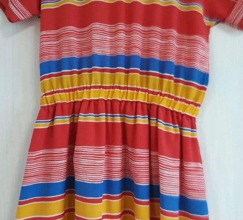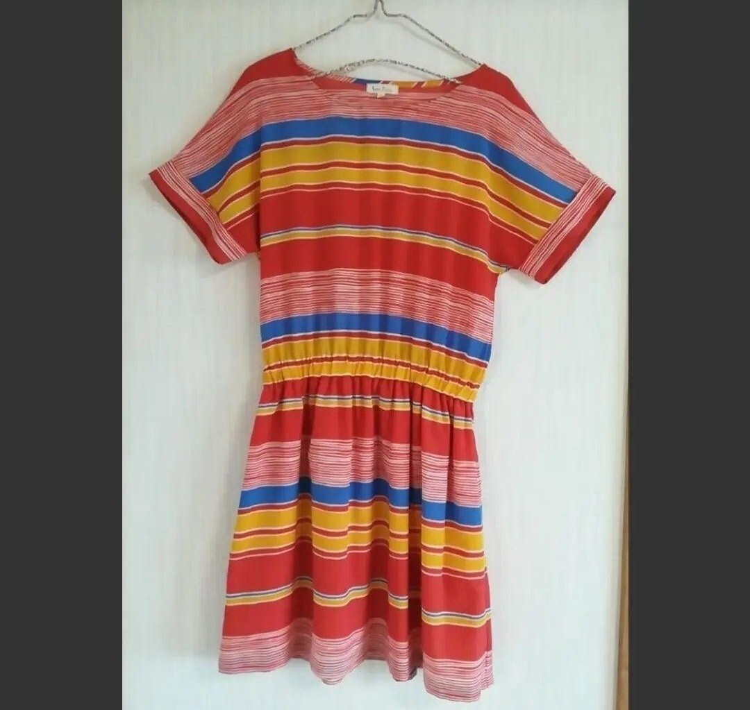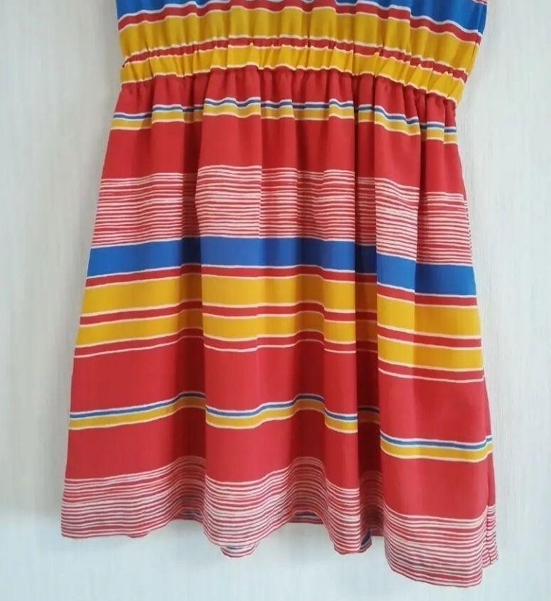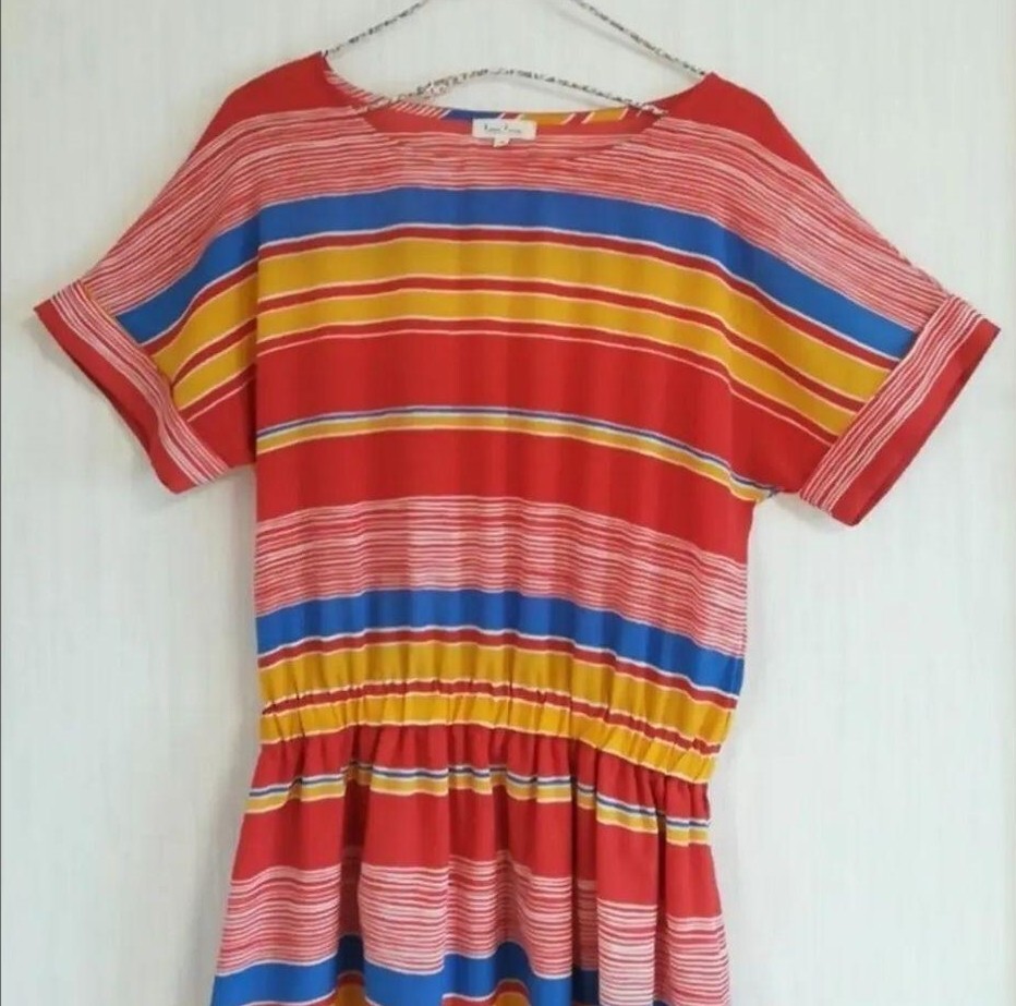 美品 Rope Picnic ロペピクニック カラフルボーダー レトロ半袖ワンピース 夏 カジュアル