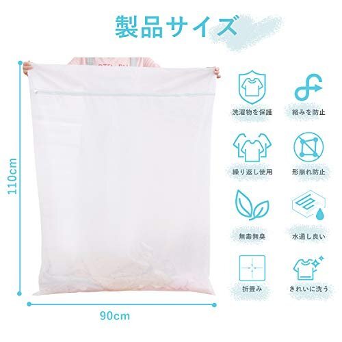 ブランド:Usetccサイズ:大「90×110cm大容量」サイズ:90×110cm 素材:ポリエステル 洗濯ネットは90×110cmの特大サイズで、コート、セーター等の服だけでなく、布団、毛布、寝具、ぬいぐるみ、枕等の大物も入れます。