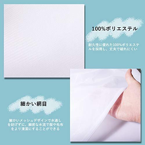 「細かい網目&丈夫」ランドリーネットは耐久性に優れた100%ポリエステルを採用し、丈夫で破れにくいです。また洗濯袋はファインメッシュ構造で、洗濯物の絡みや形崩れ、色落ちや色移りなど防ぐことができます。