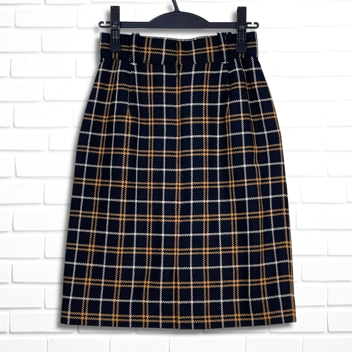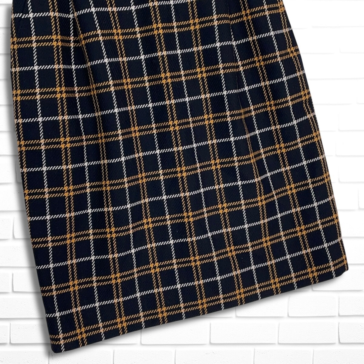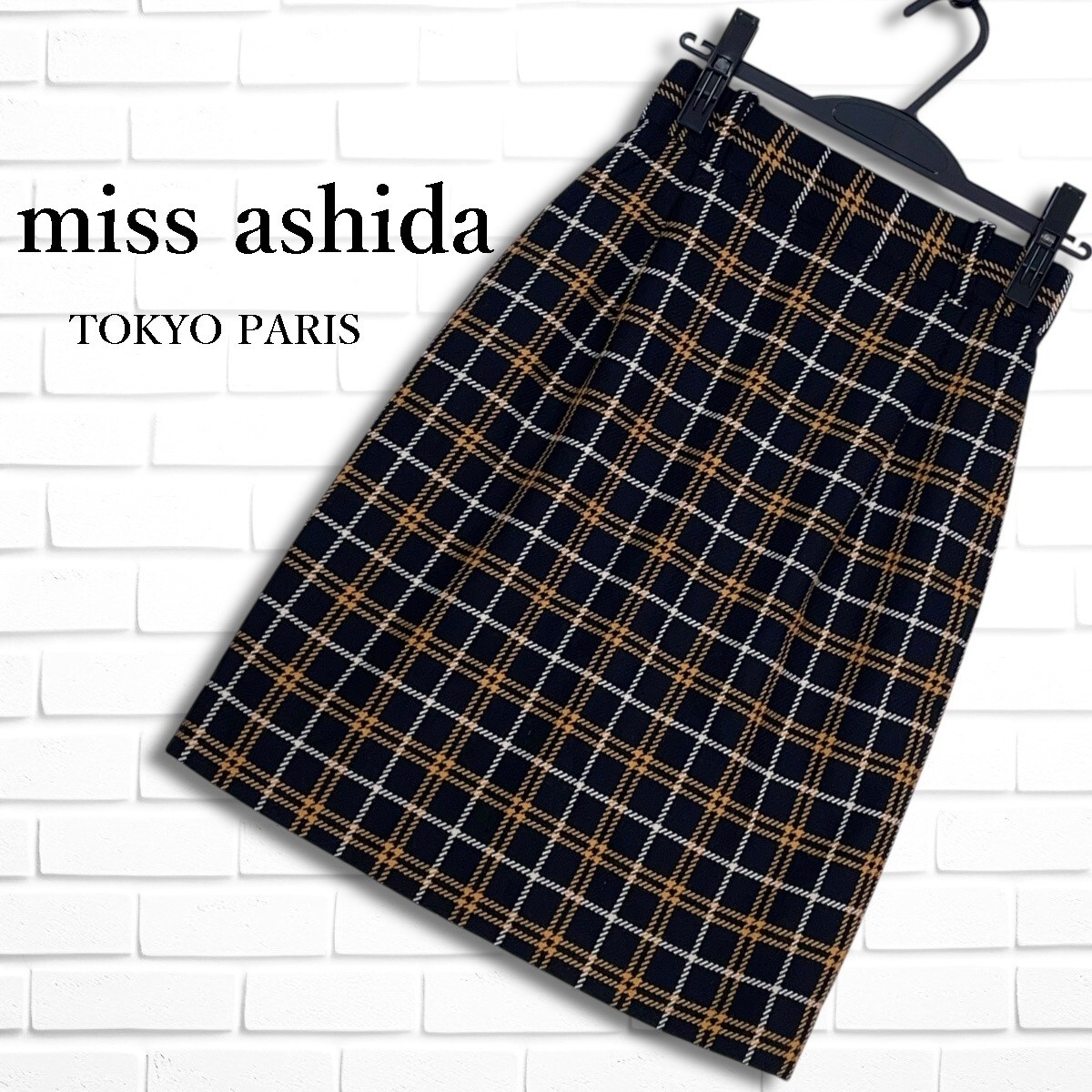 ◆美品◆ miss ashida ミスアシダ ジュンアシダ ウール 100% チェック スカート 黒 × 白 × オレンジ レディース 9 送料無料 3835G◇