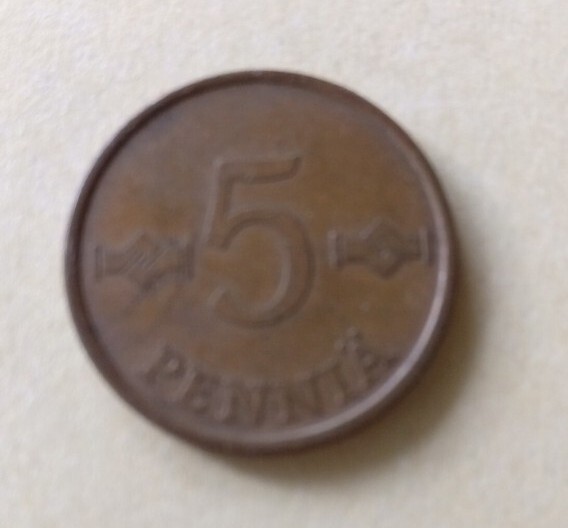 フィンランドで1963~1997年限定の循環貨幣5ペニー(1963年)です。