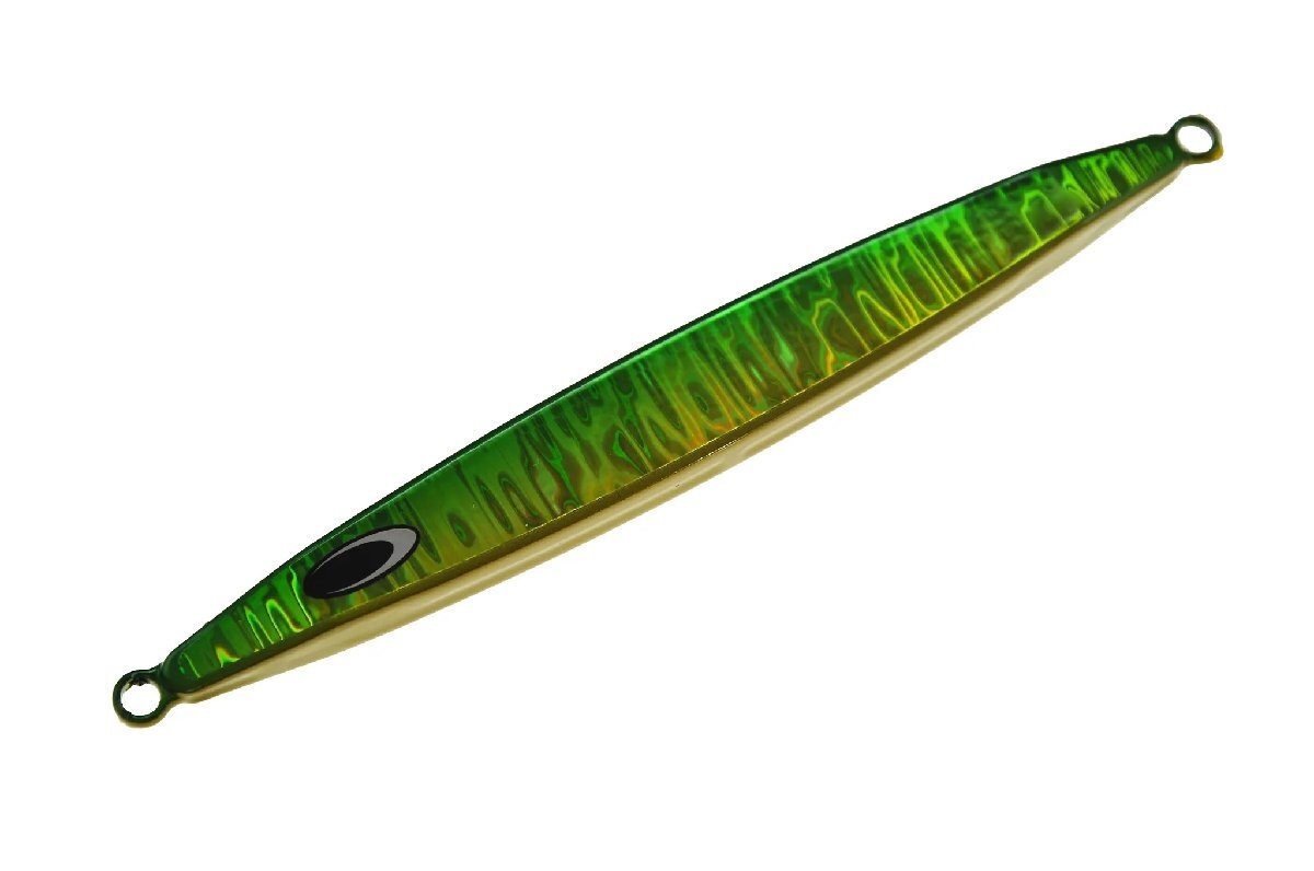 センターバランス、左右非対称の鉄素材が鉛のショートジグでは演出できない安定した水平姿勢を作り、青物のバイトを誘発させます。