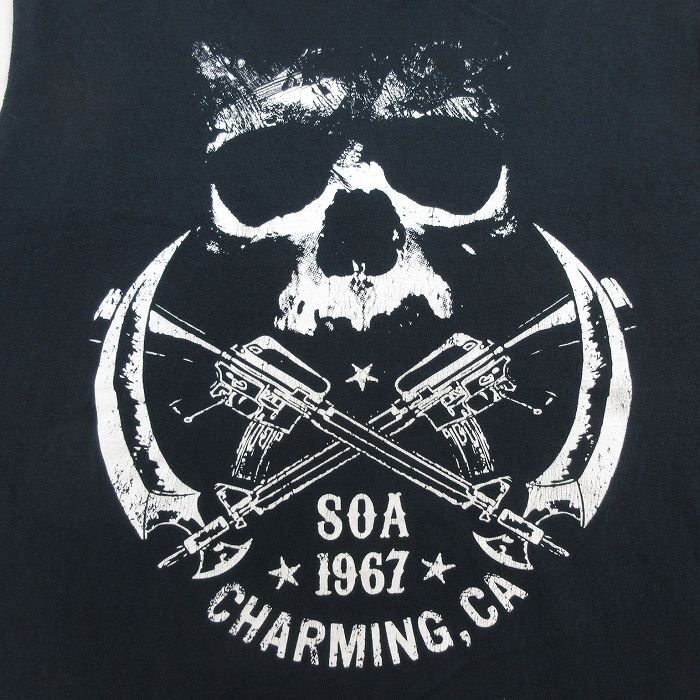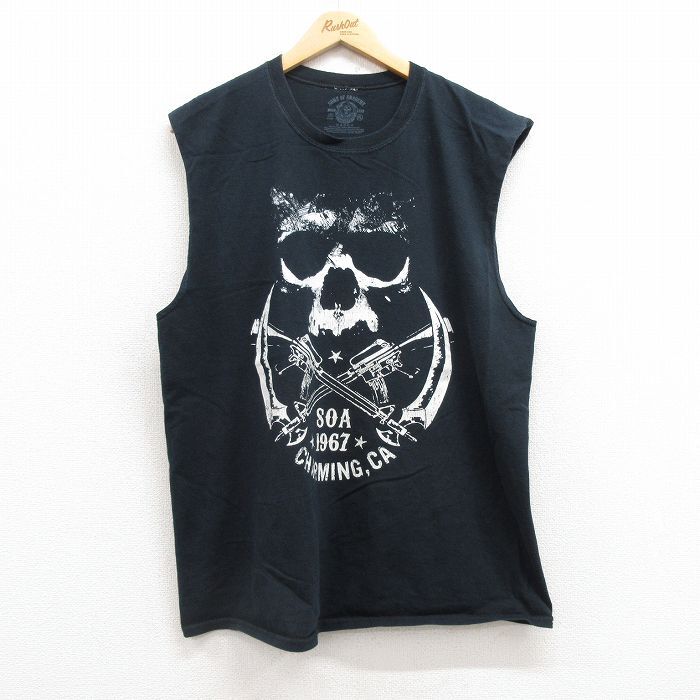 【商品名】 L★古着 ノースリーブ Tシャツ メンズ サンズオブアナーキー サンオブアナーキー コットン クルーネック 黒