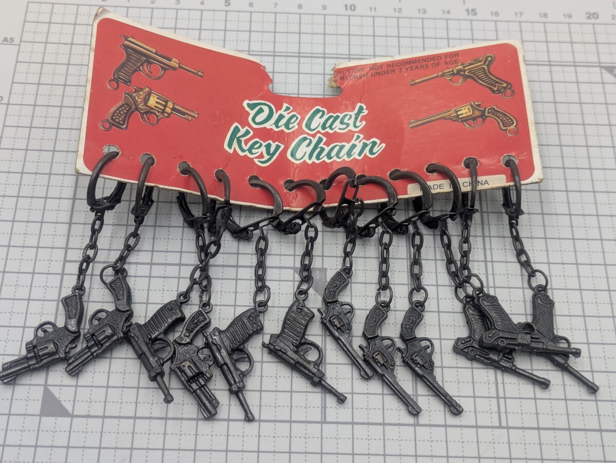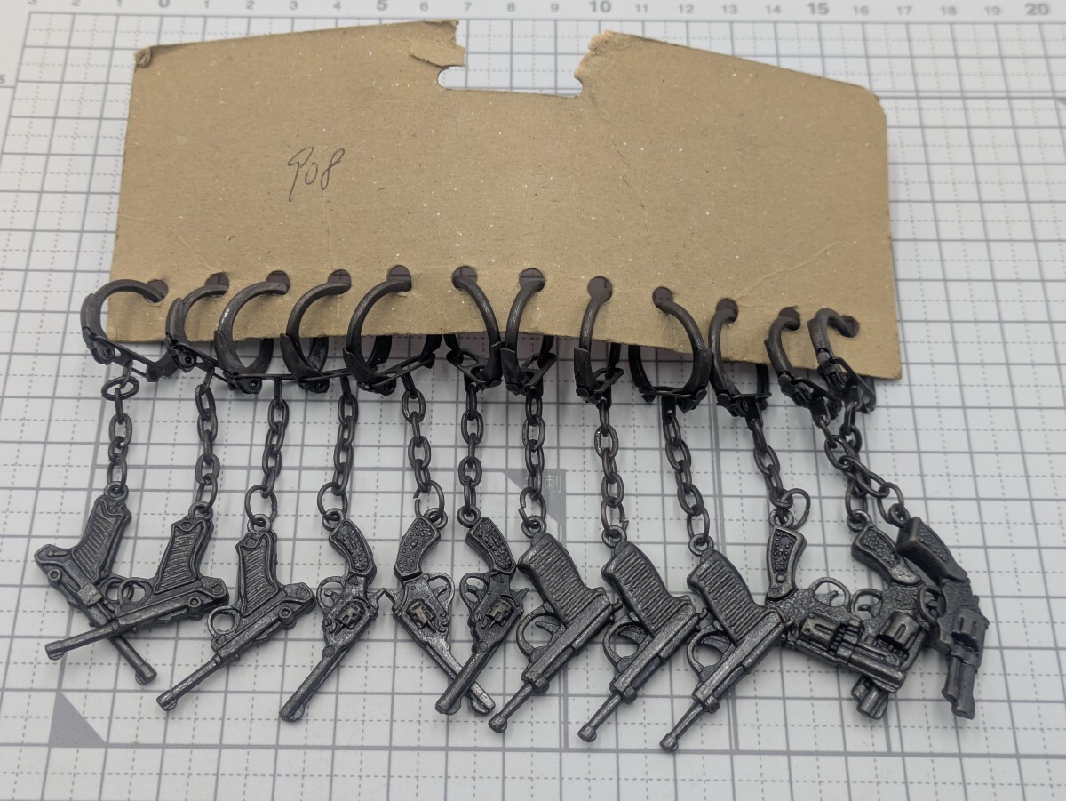 S3【ジャンク 未検品】昭和レトロ ダイキャスト ガン 拳銃 12個付 当時物 駄菓子屋 キーホルダー キーチェーン