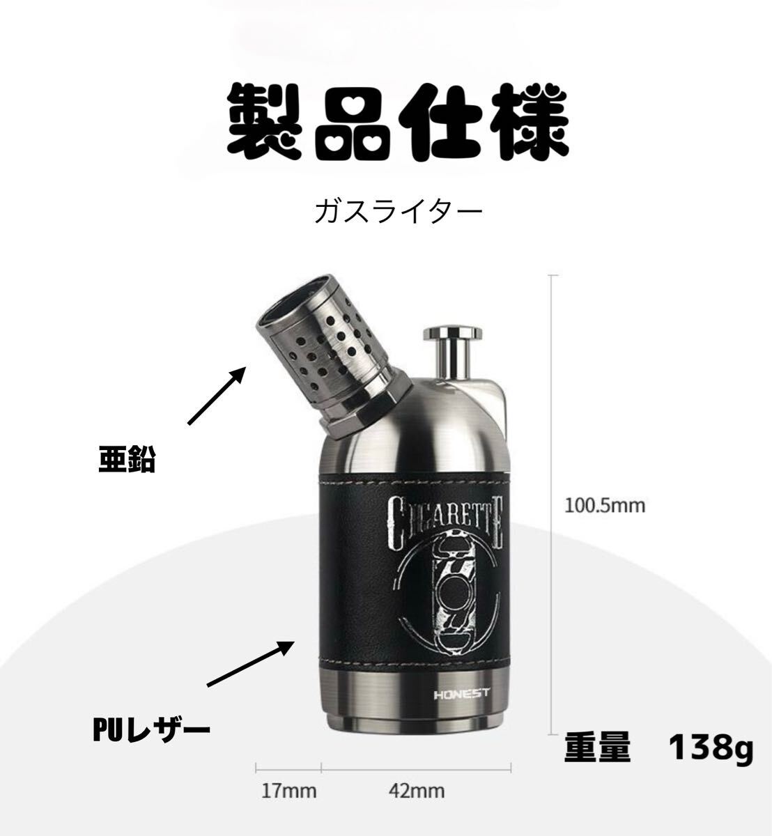 2、【超大容量タンク|8.3gガス収納】通常のライターよりもガス容量が多く、一度の充填で長時間使用可能。ガス容量は8.3gと超大容量仕様で、頻繁な補充が不要。底部には加圧式のガス注入口と火力調整ダイヤルを搭載し、使いやすさも追求しました。