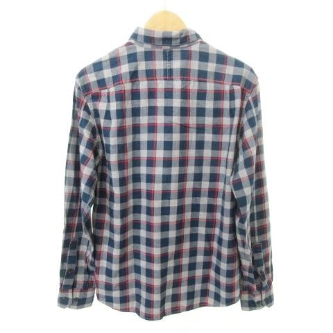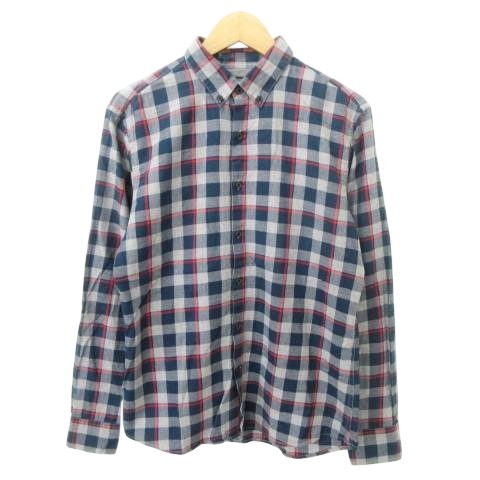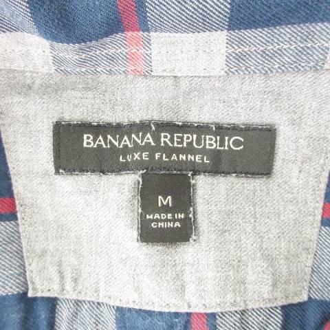 バナナリパブリック BANANA REPUBLIC 美品 シャツ 長袖 チェック ボタンダウン 薄手 Mサイズ グレー 紺 ネイビー ■MET1 メンズ