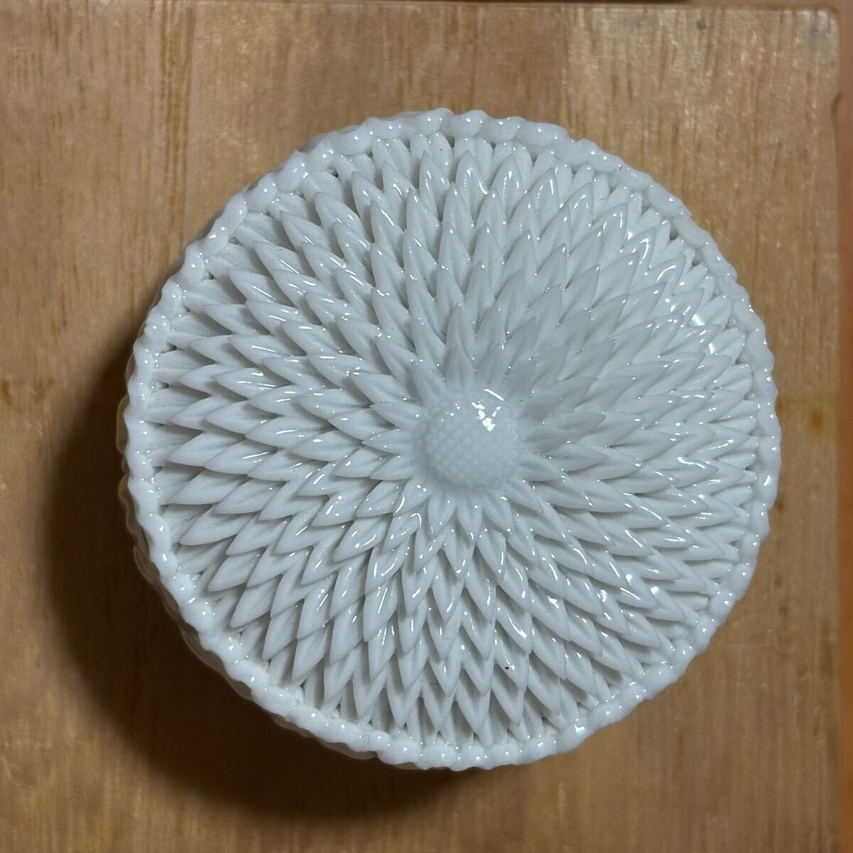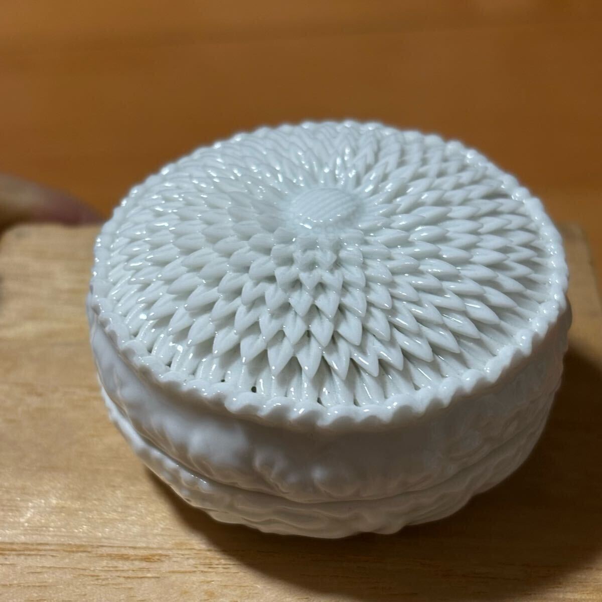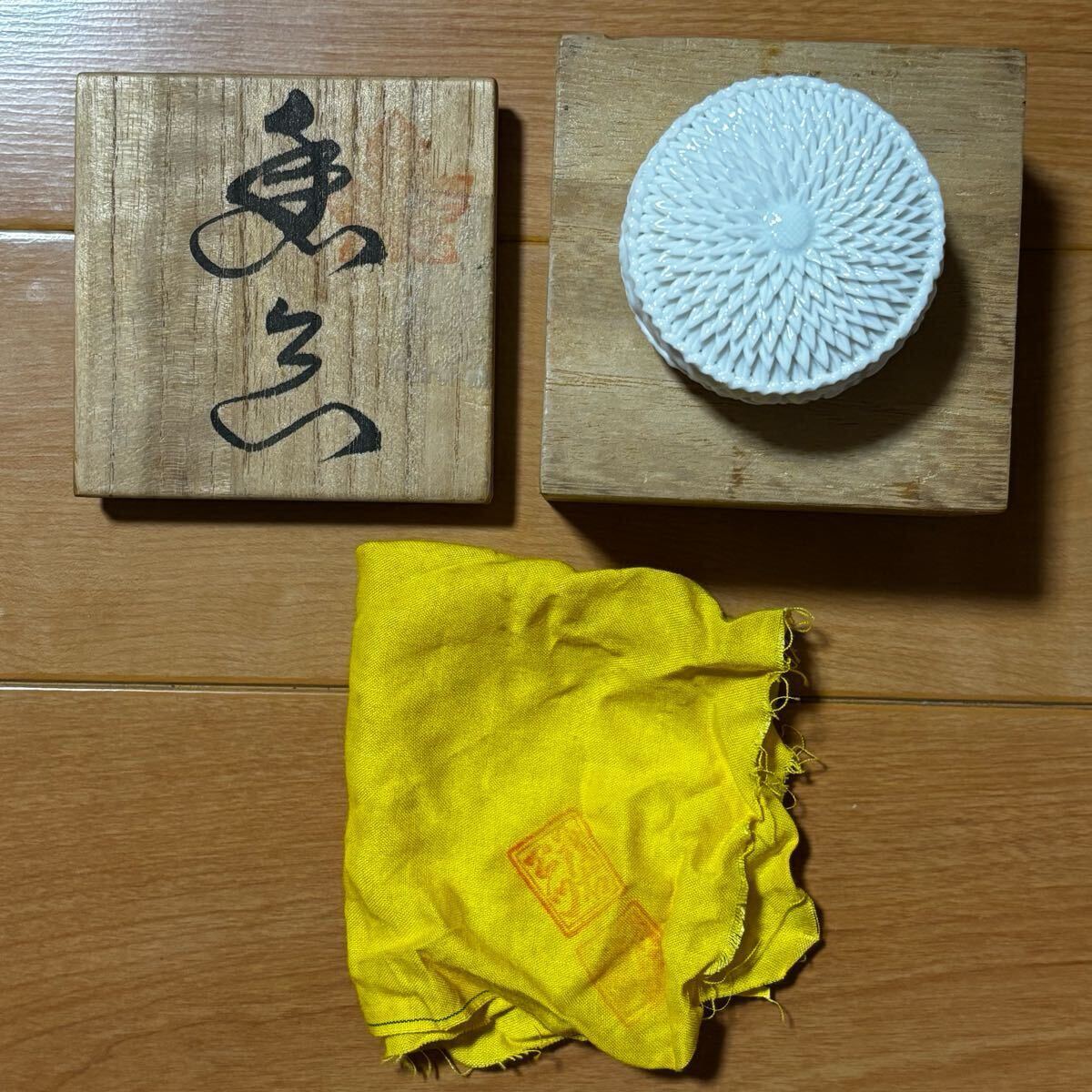 未使用 希少 平戸焼 十五代 中里茂右衛門 菊花 香合 白磁 コレクション 置物 木箱 送料無料